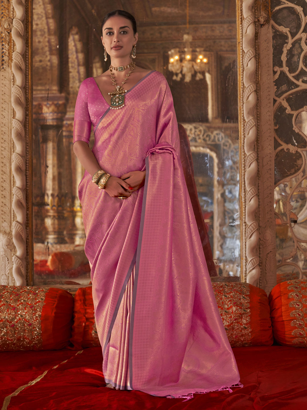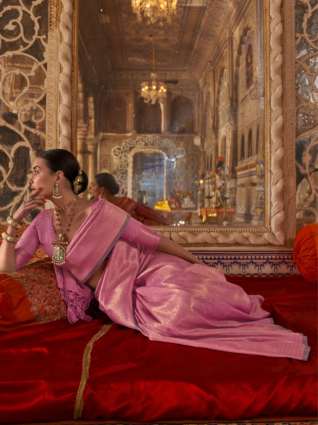 Handloom Party Wear Saree in Pink and Majenta with Weaving work