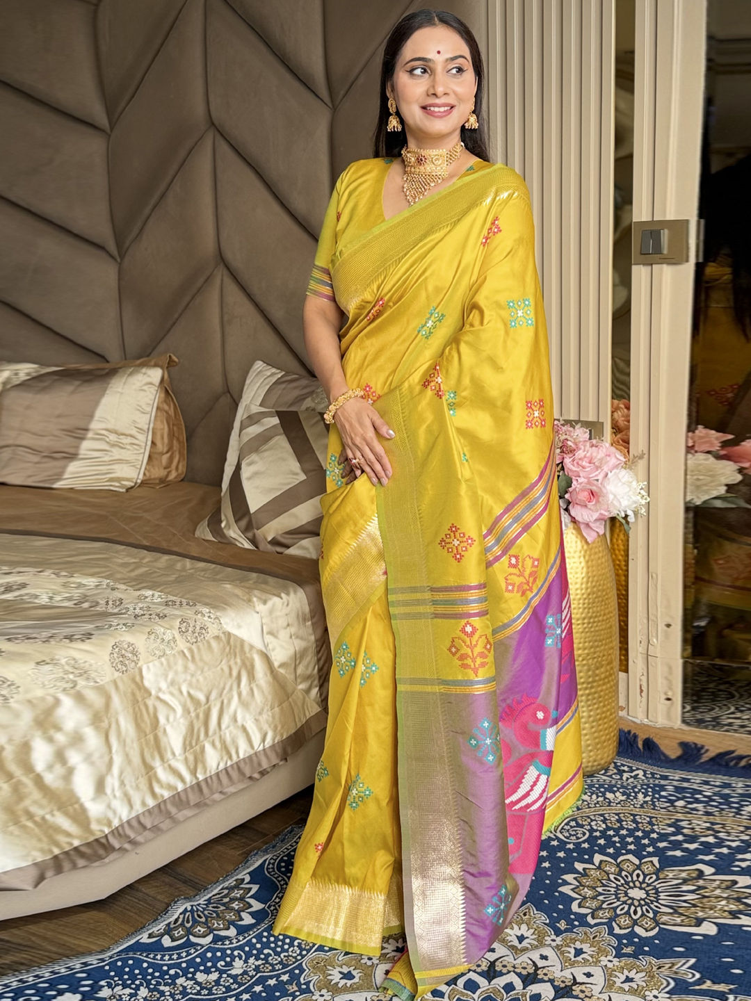 Yellow color Saree in Handloom fabric with Weaving, Zari work
