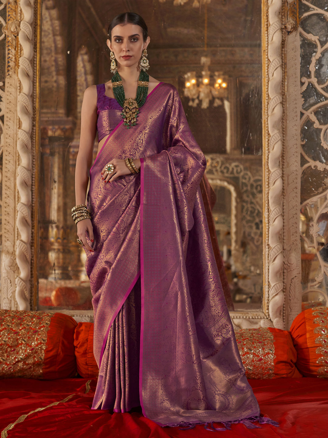Handloom Festive Saree in Pink and Majenta with Weaving work