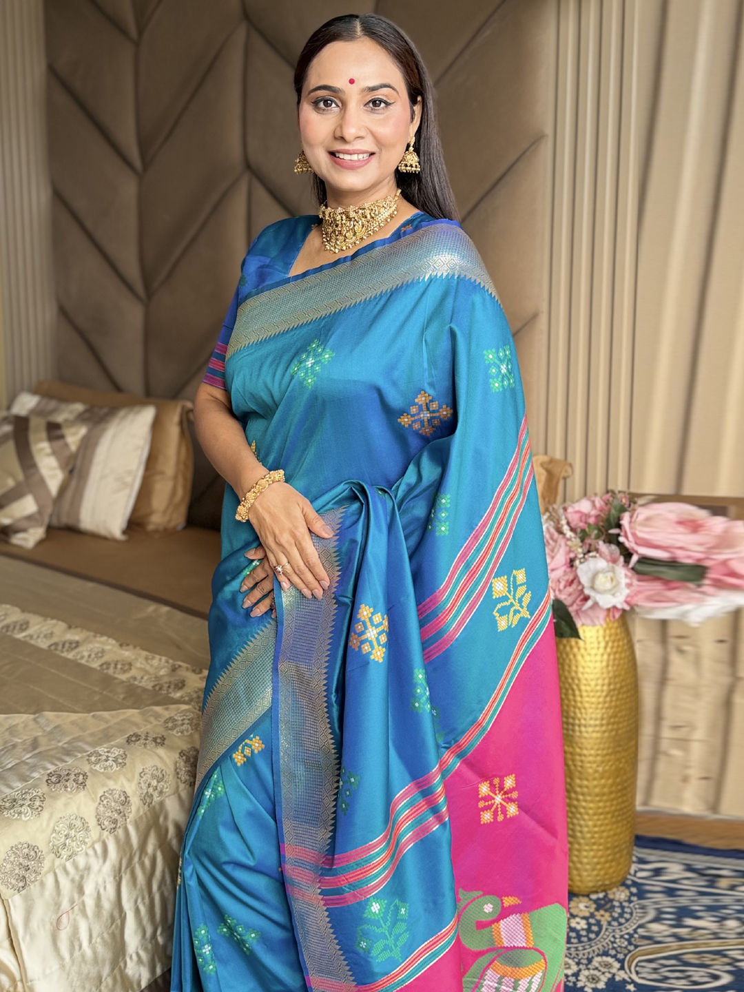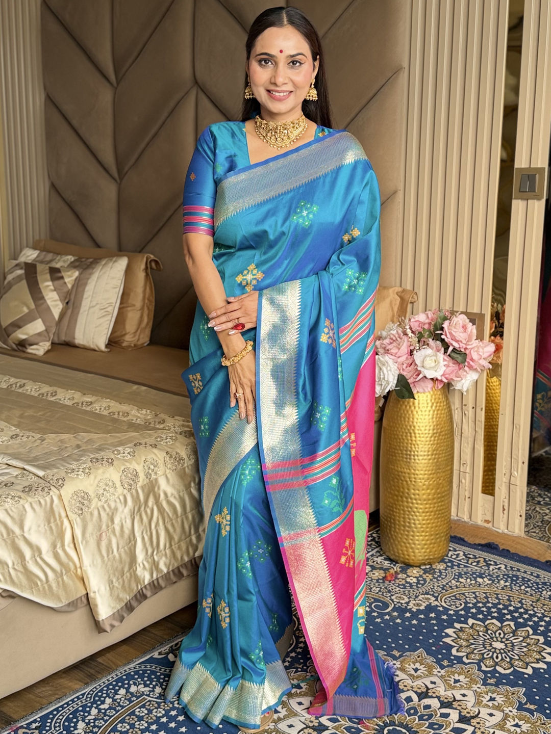 Blue color Saree in Handloom fabric with Weaving, Zari work