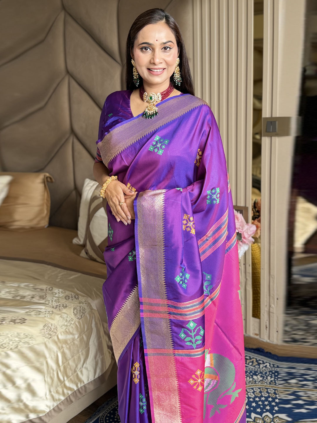 Purple and Violet color Saree in Handloom fabric with Weaving, Zari work
