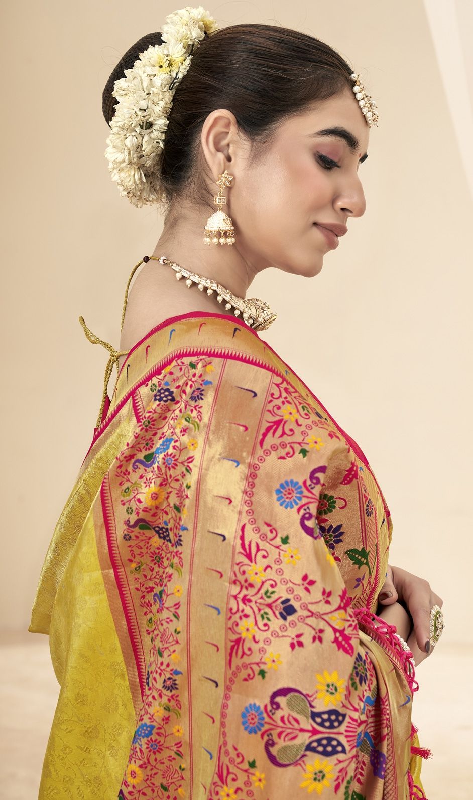 in Yellow with Weaving work