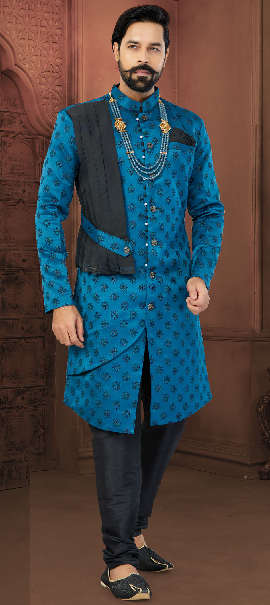 Black and Grey, Blue color IndoWestern Dress in Imported, Jacquard fabric with Embroidered, Thread work