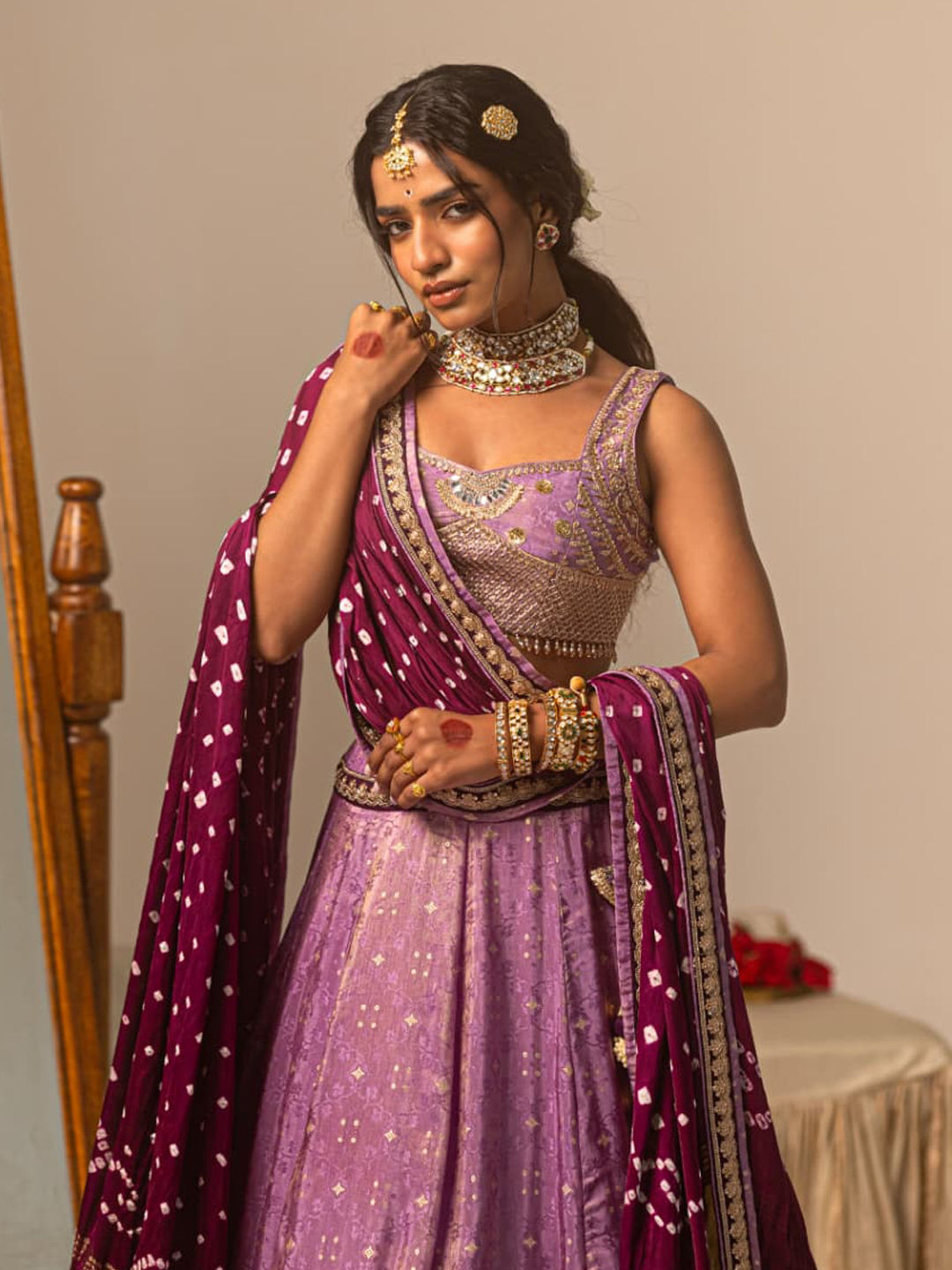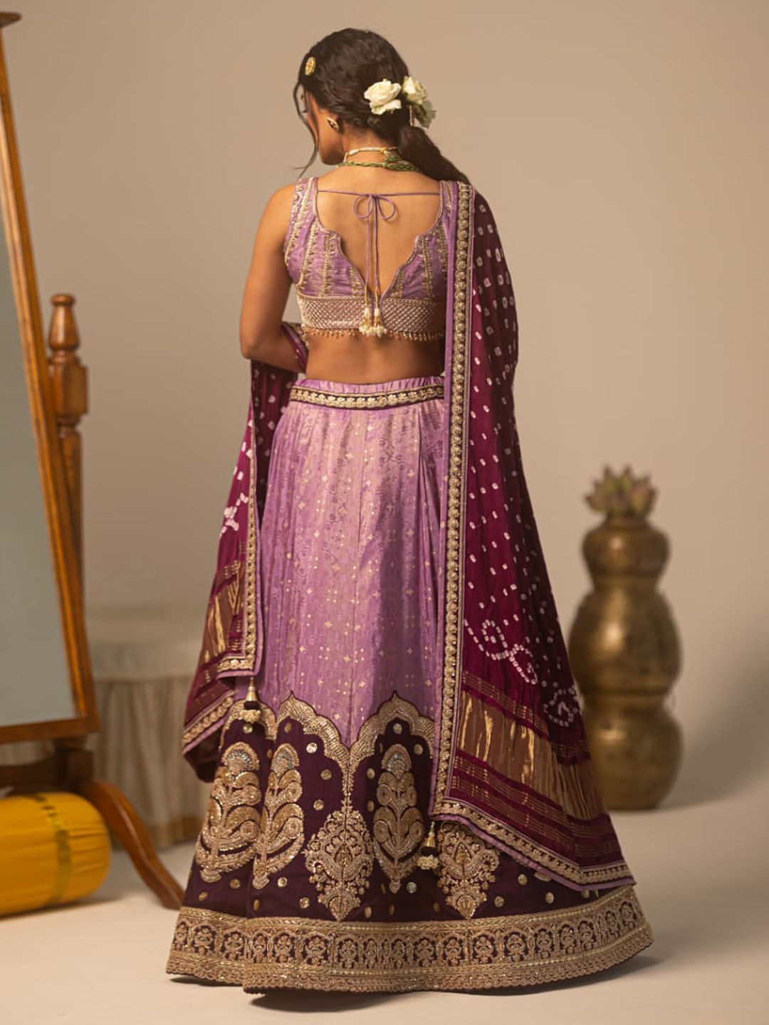 Pink and Majenta, Red and Maroon color Lehenga in Jacquard, Tissue fabric with Embroidered, Sequence, Thread, Zari work