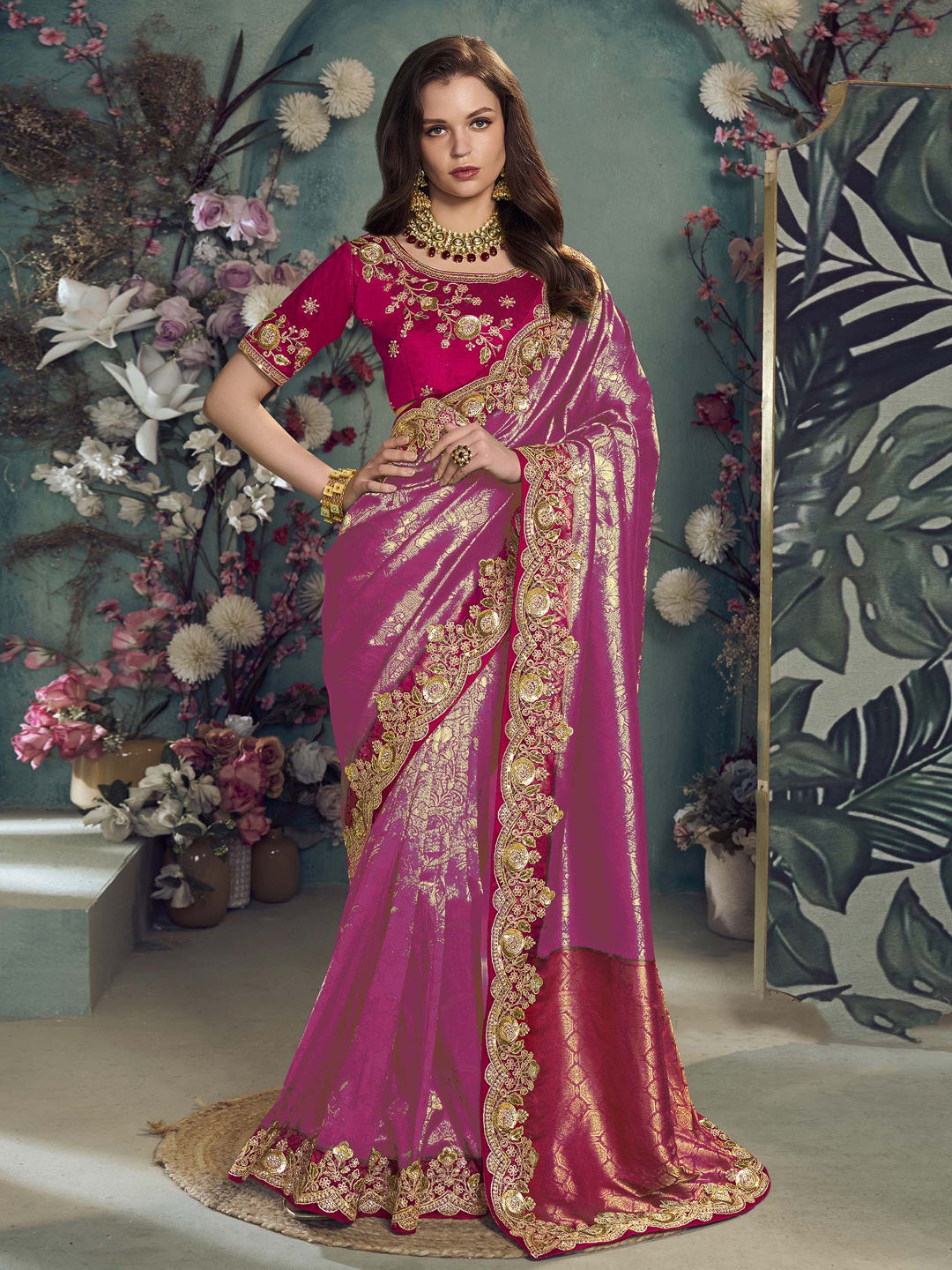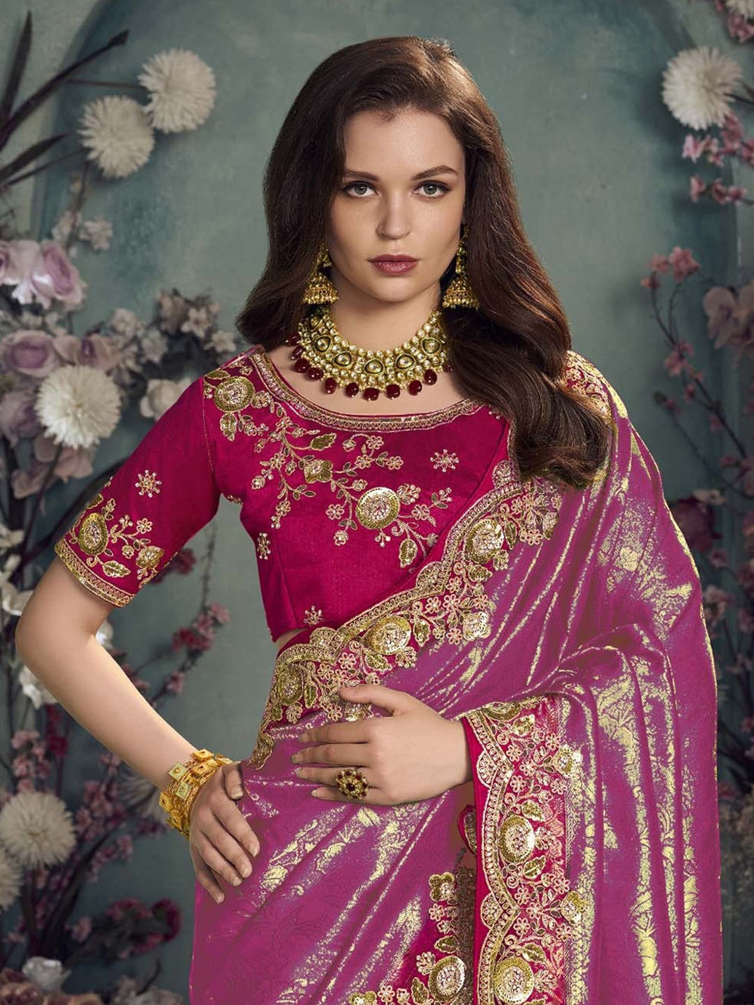 Purple and Violet color Saree in Jacquard fabric with Sequence, Thread work