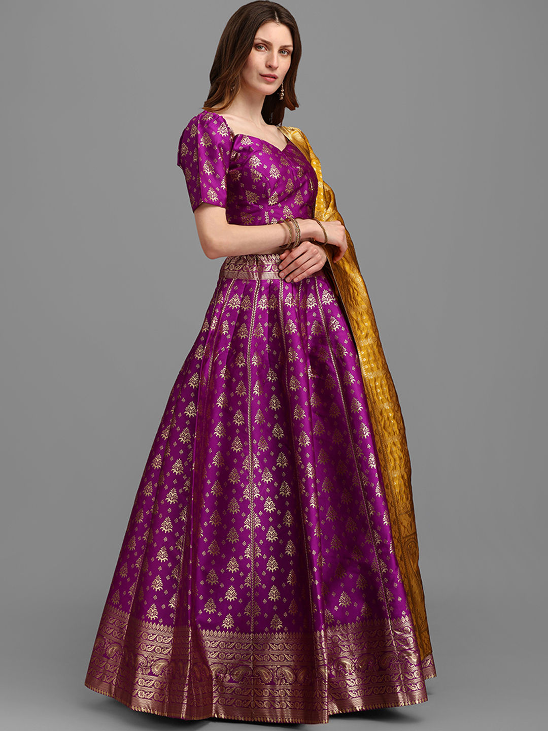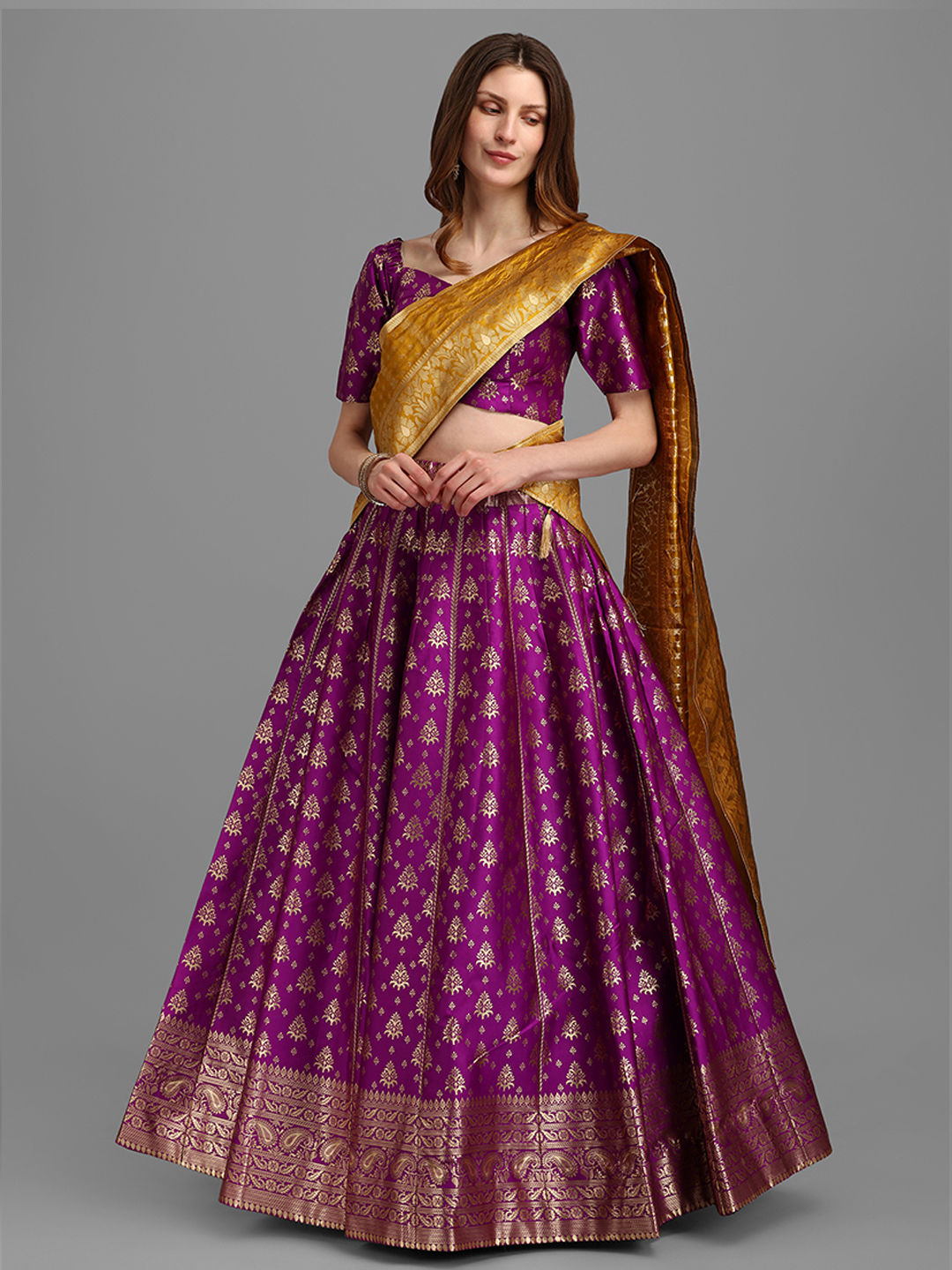 Purple and Violet color Lehenga in Jacquard fabric with Weaving work