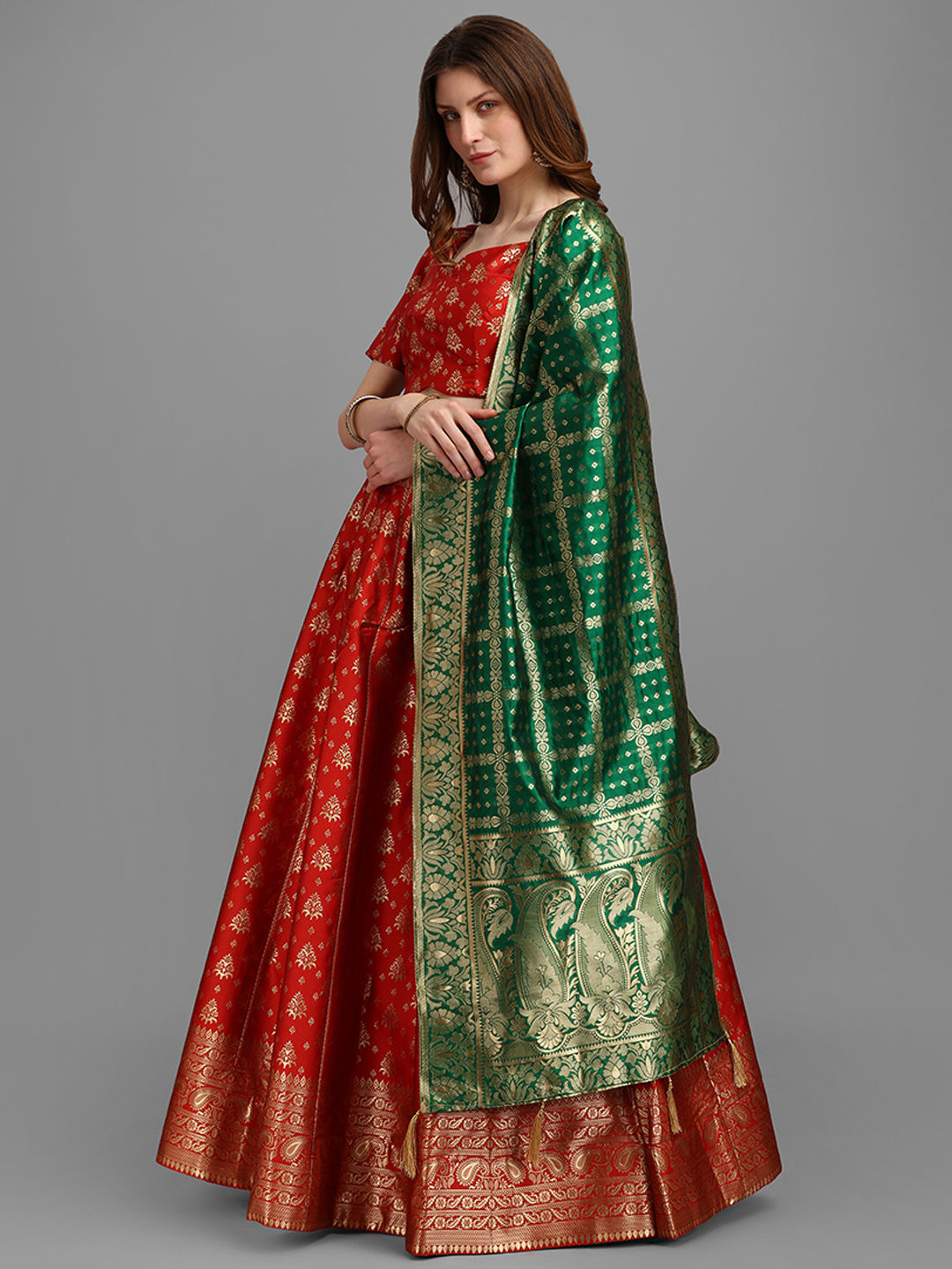 Jacquard Wedding Lehenga in Green with Weaving work