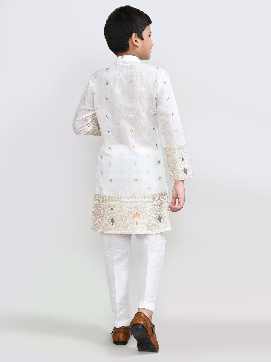 White and Off White color Boys Kurta Pyjama in Jacquard fabric with Weaving work