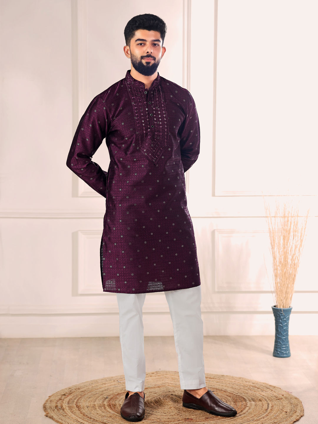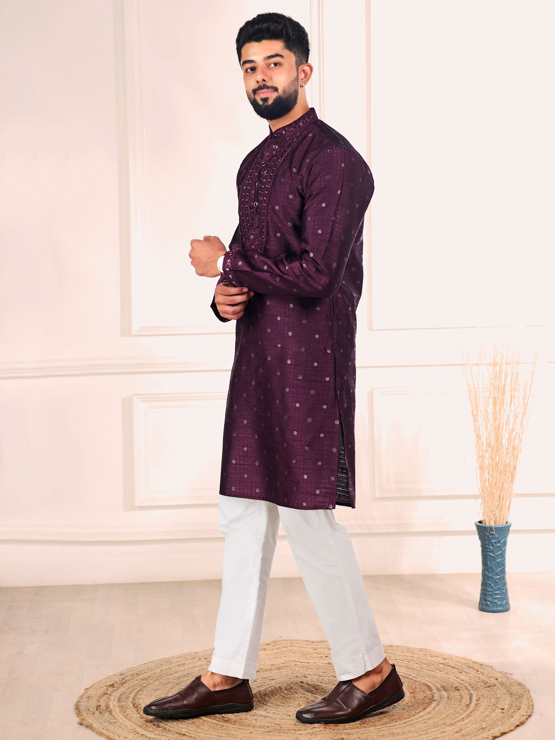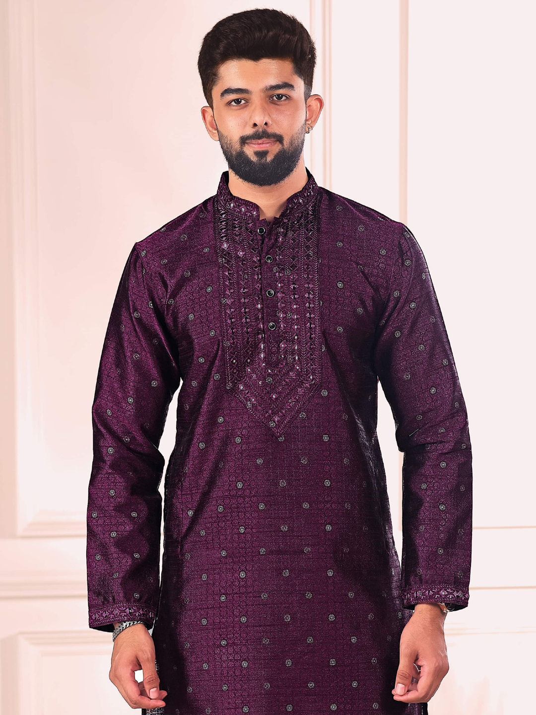 Purple and Violet color Kurta Pyjamas in Jacquard fabric with Embroidered, Thread work