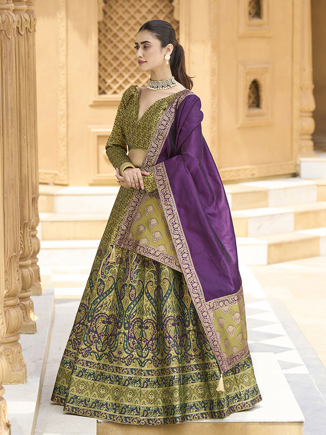 Jacquard Festive Lehenga in Purple and Violet with Weaving work