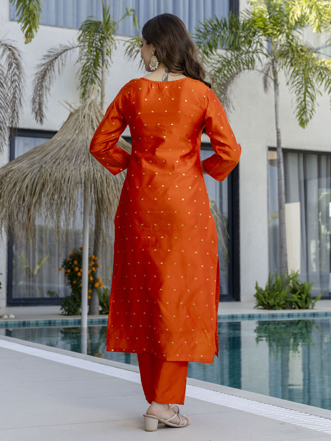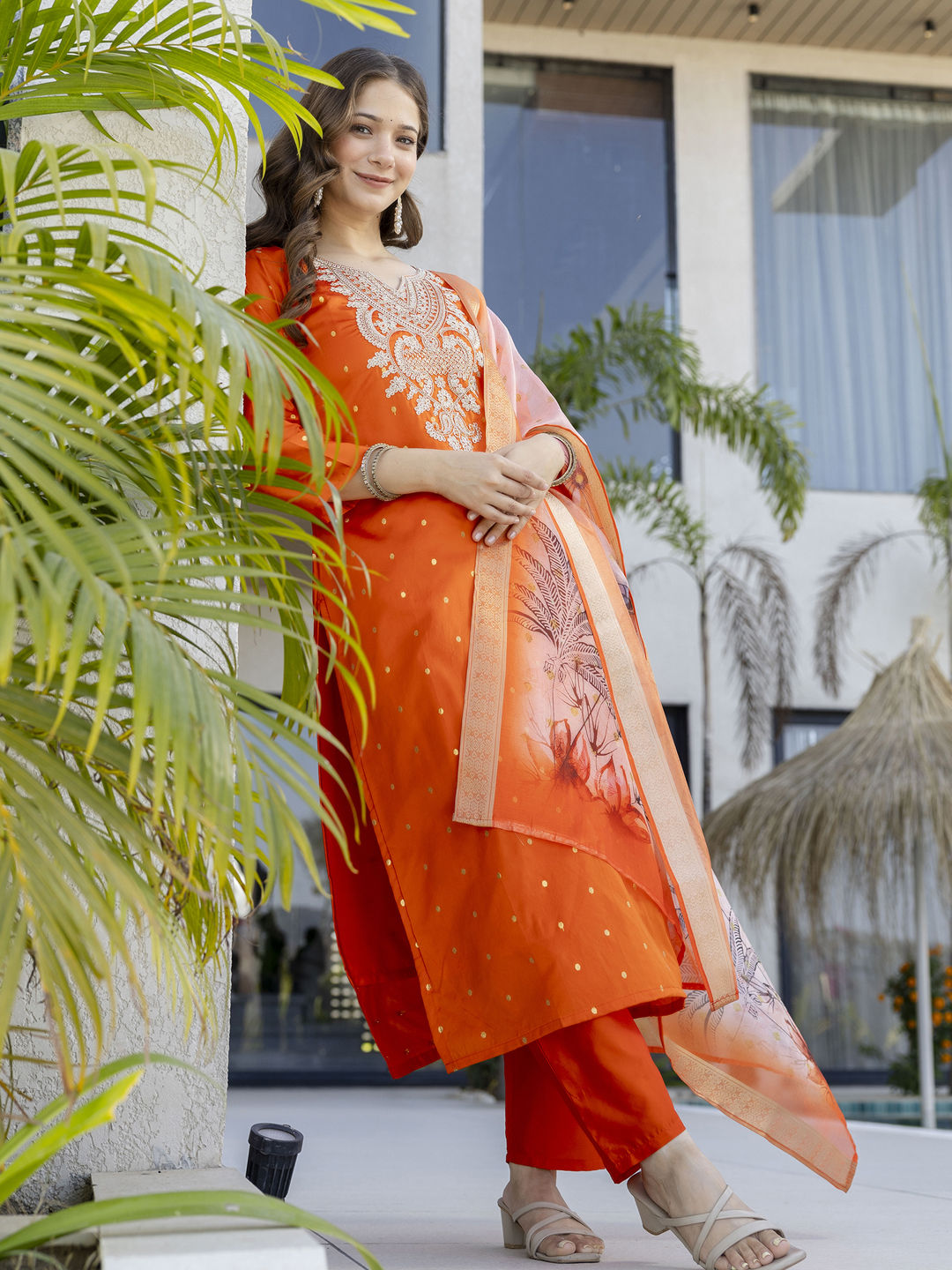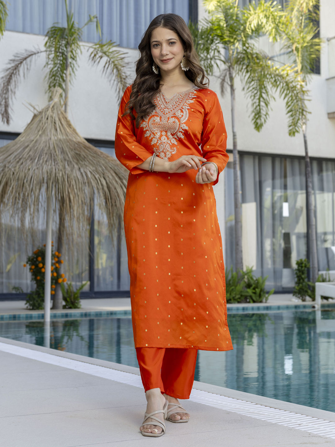 in Orange with Embroidered work
