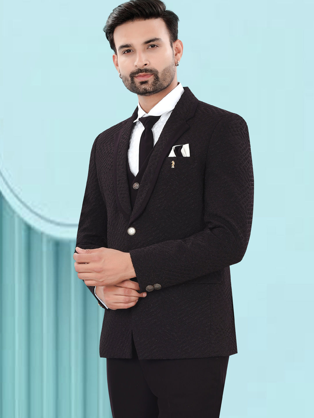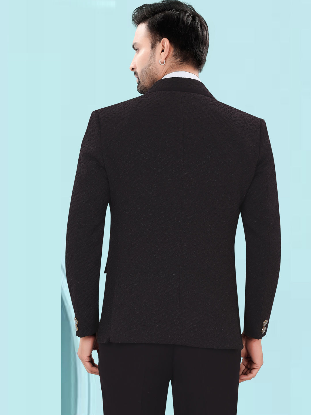 Jacquard Festive Blazer in Black and Grey with Thread work