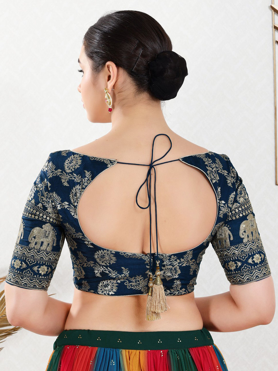 Velvet Party Wear Blouse in Multicolor with Printed work