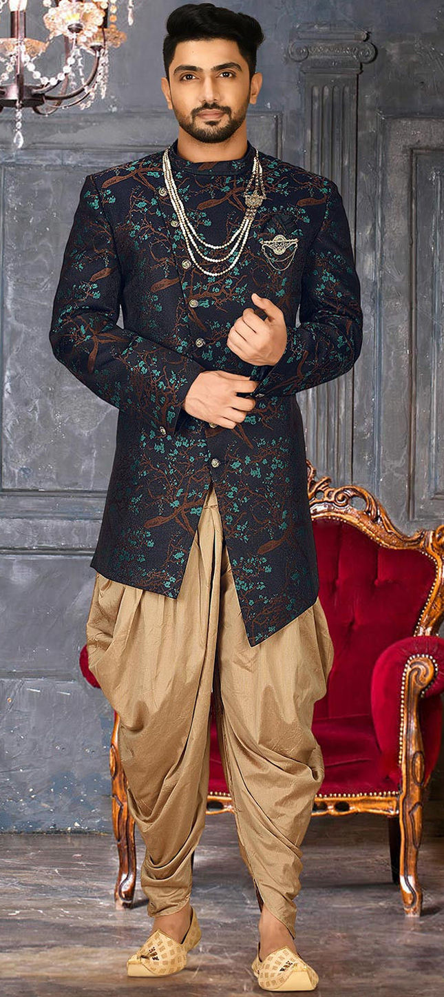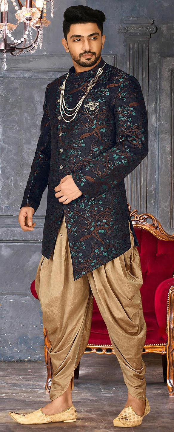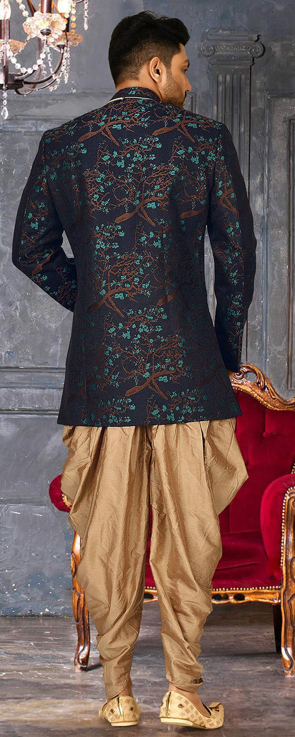 Blue color Dhoti Kurta in Jacquard fabric with Broches work