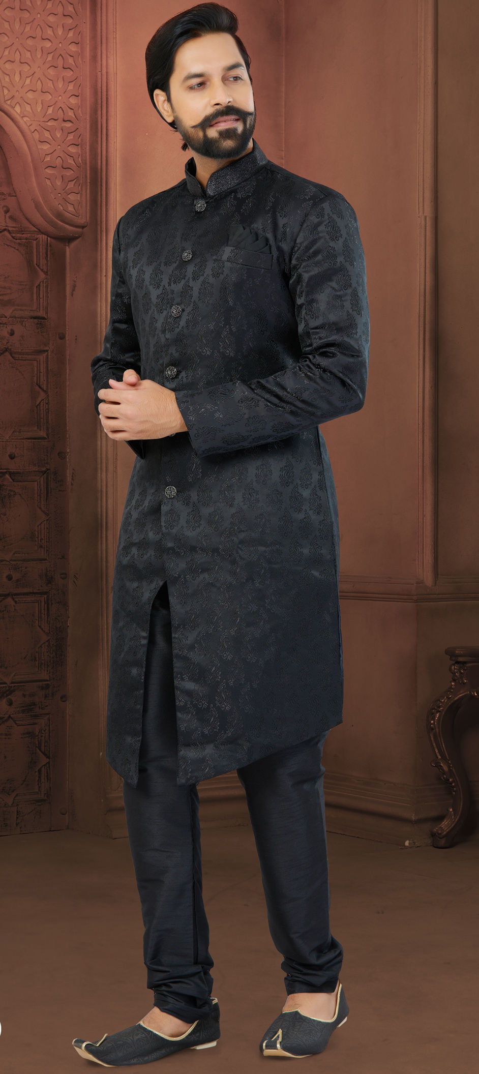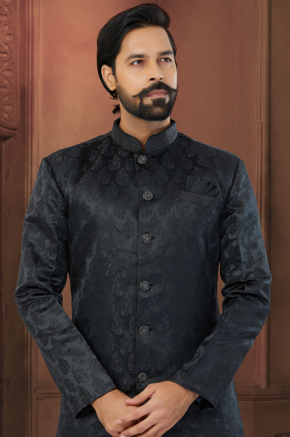 Black and Grey color IndoWestern Dress in Imported, Jacquard fabric with Embroidered, Thread work