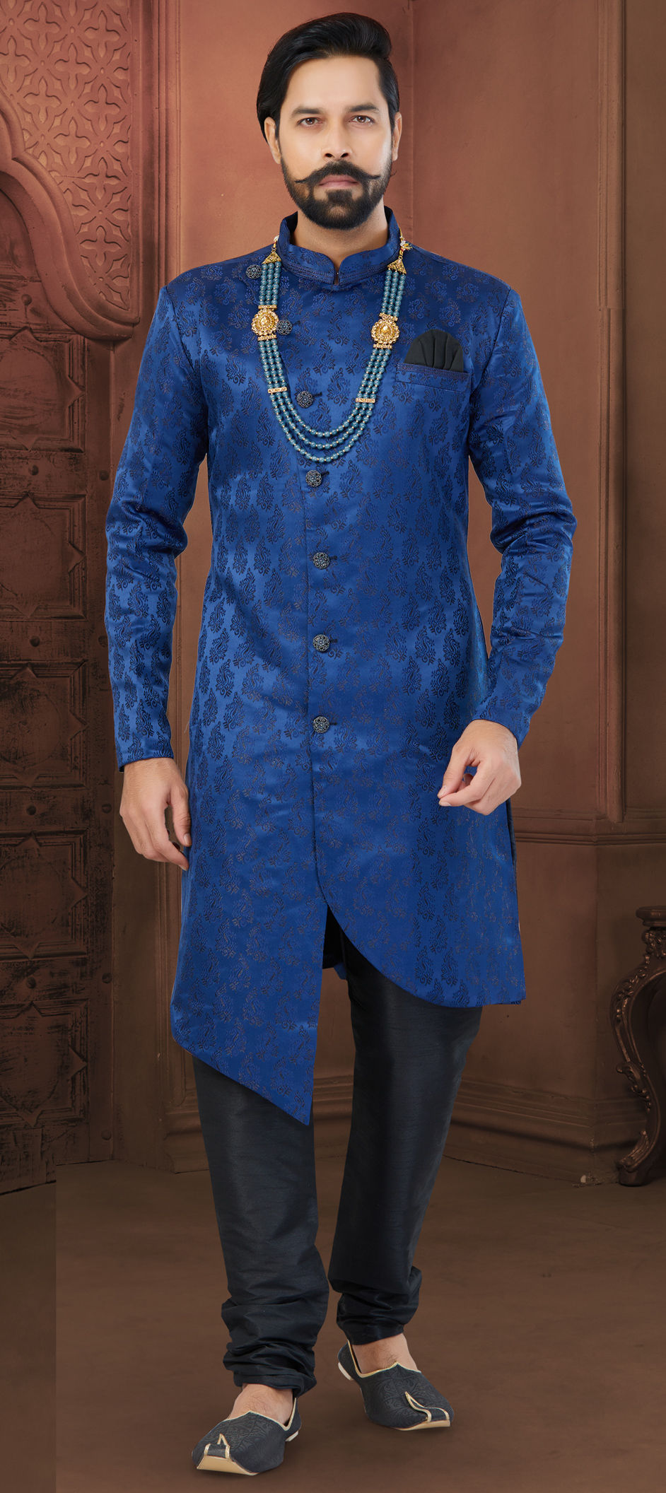 Blue color IndoWestern Dress in Imported, Jacquard fabric with Embroidered, Thread work
