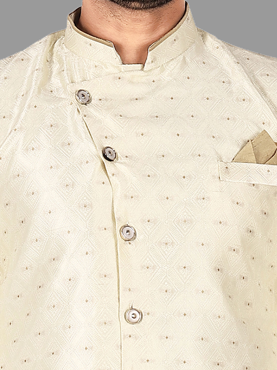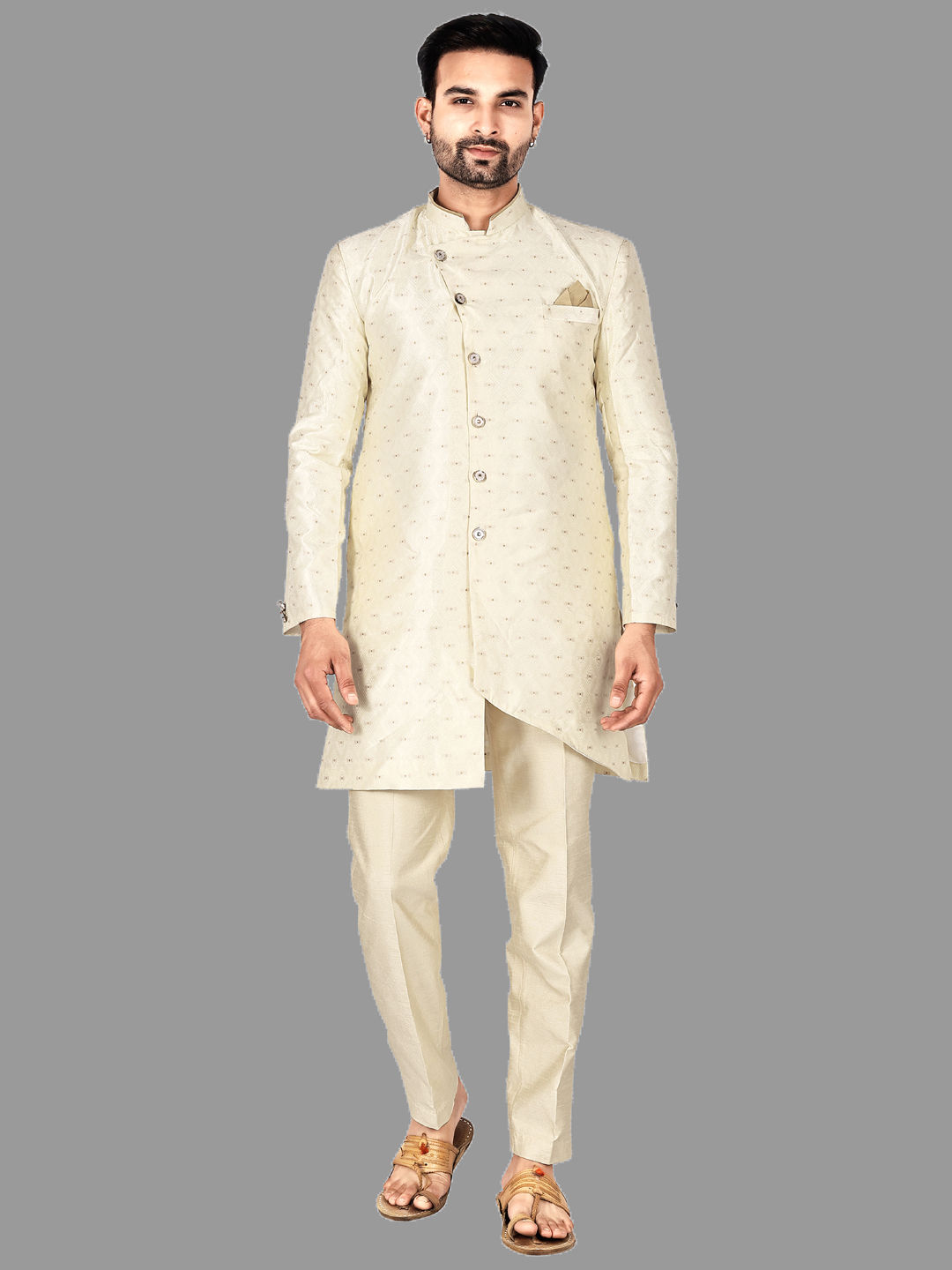 Art Silk Wedding IndoWestern Dress in Beige and Brown with Zardozi work