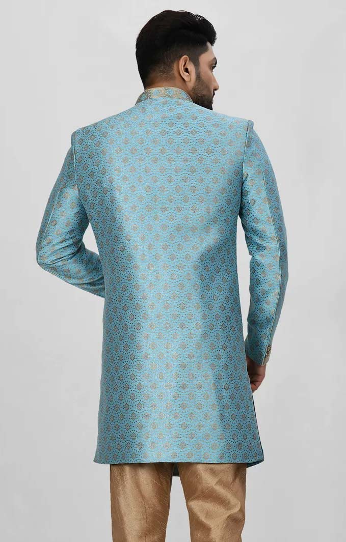 Jacquard Wedding Kurta in Blue with Weaving work