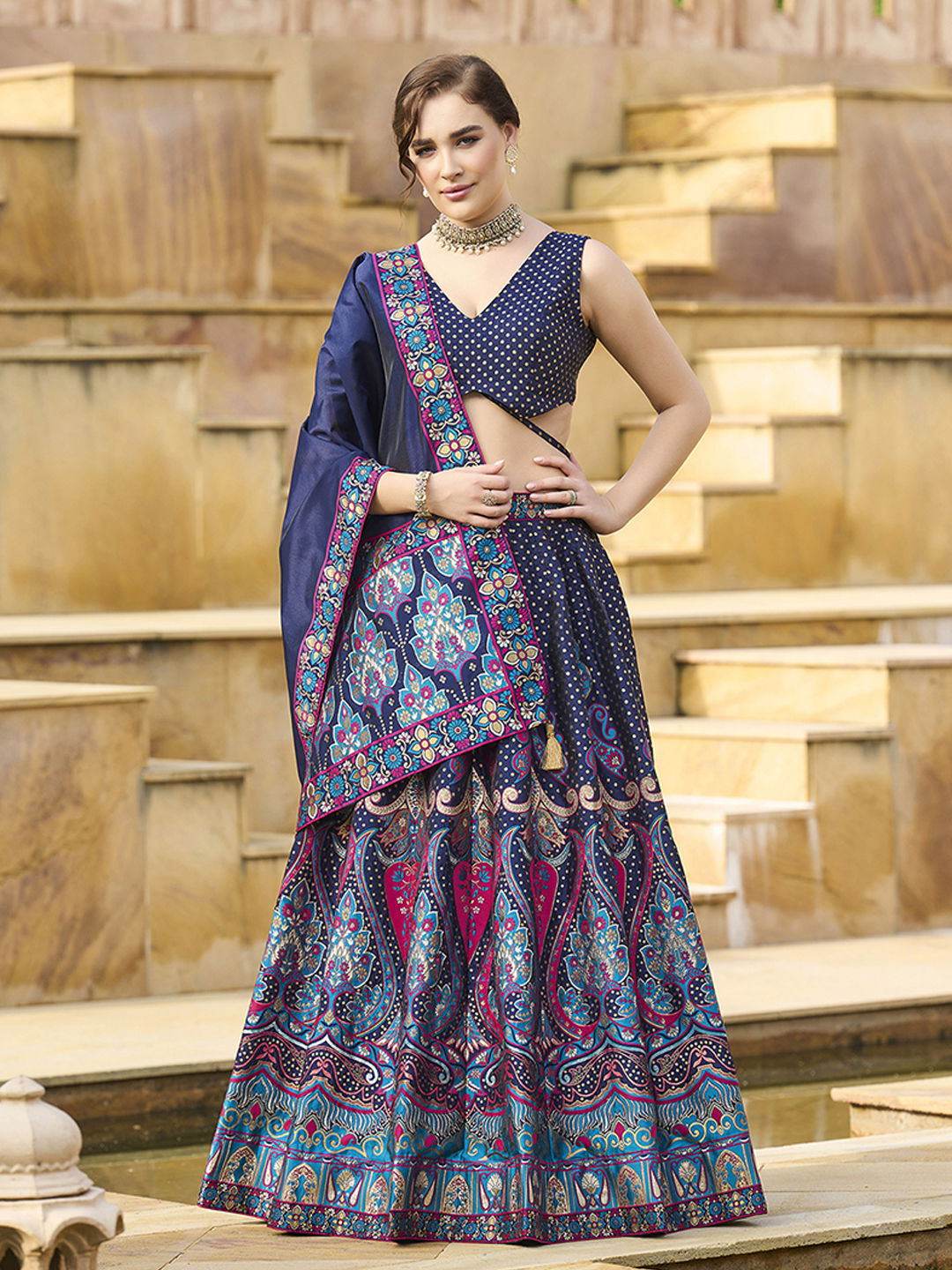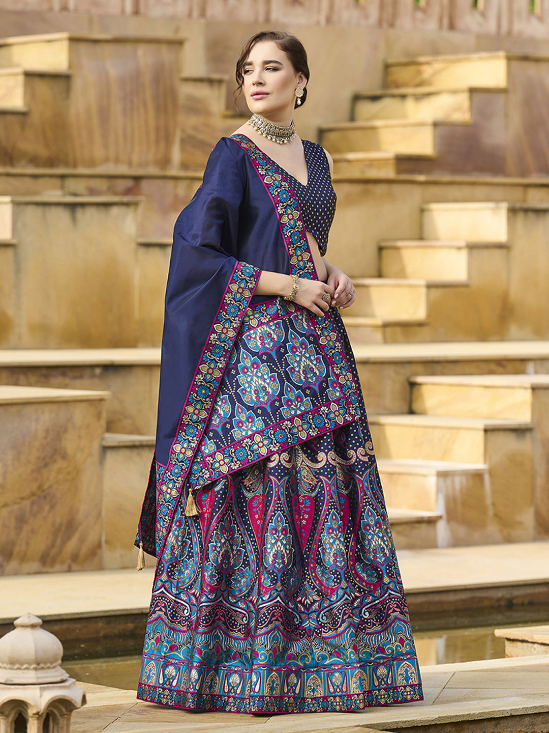 Blue color Lehenga in Jacquard fabric with Weaving, Zari work