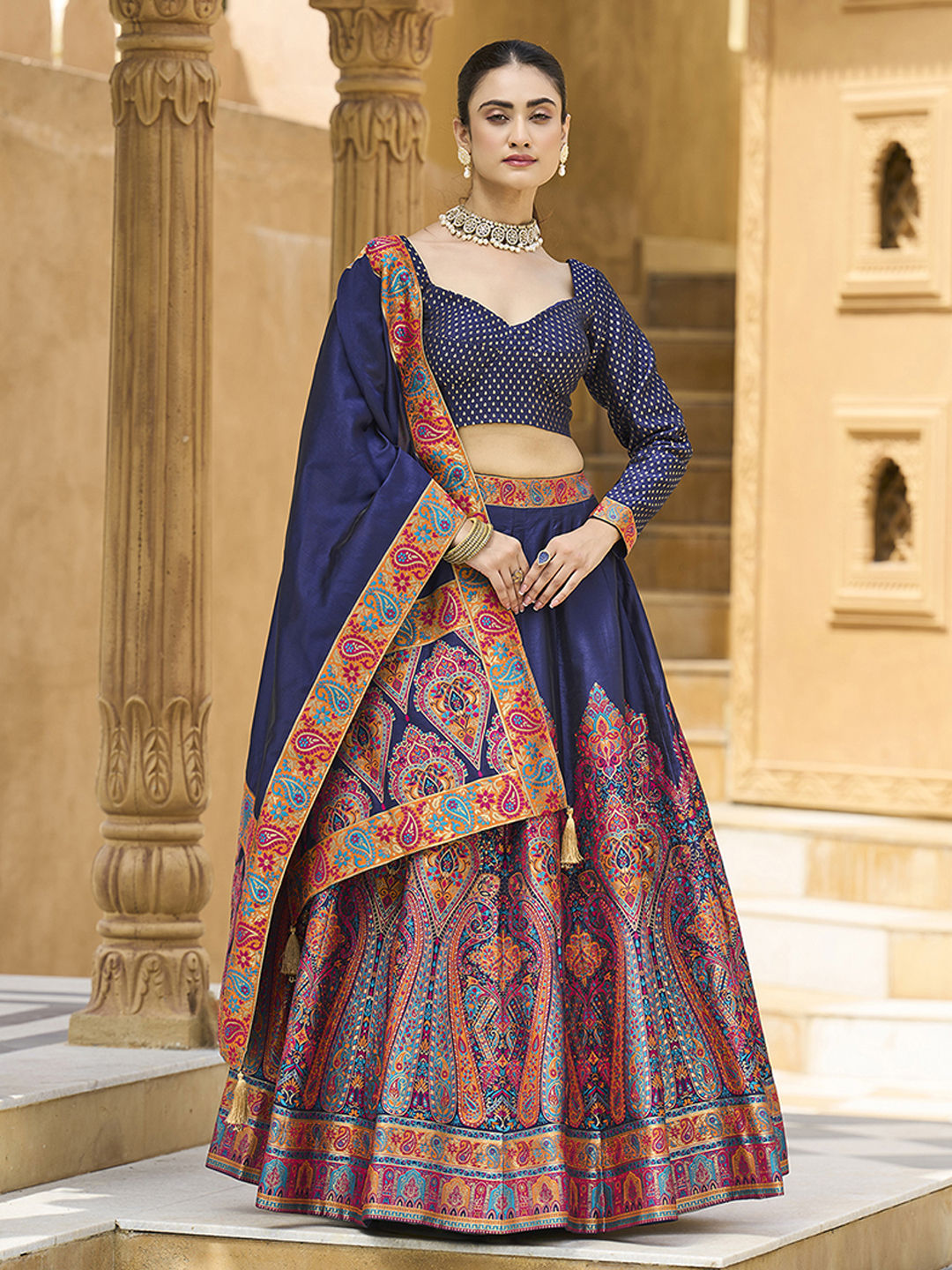 Blue color Lehenga in Jacquard fabric with Weaving, Zari work