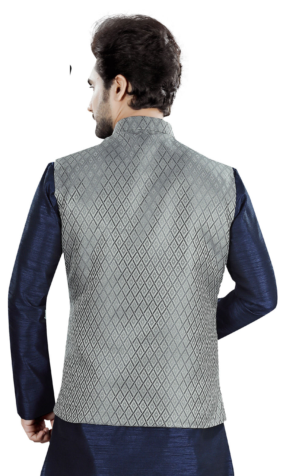 Black and Grey color Nehru Jacket in Jacquard fabric with Weaving work