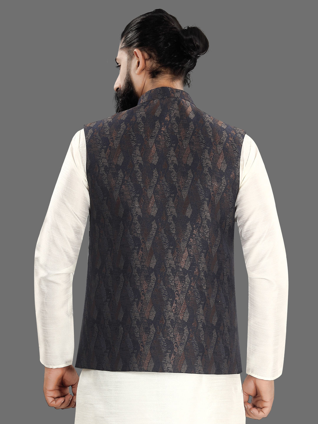 Blue color Nehru Jacket in Jacquard fabric with Weaving work