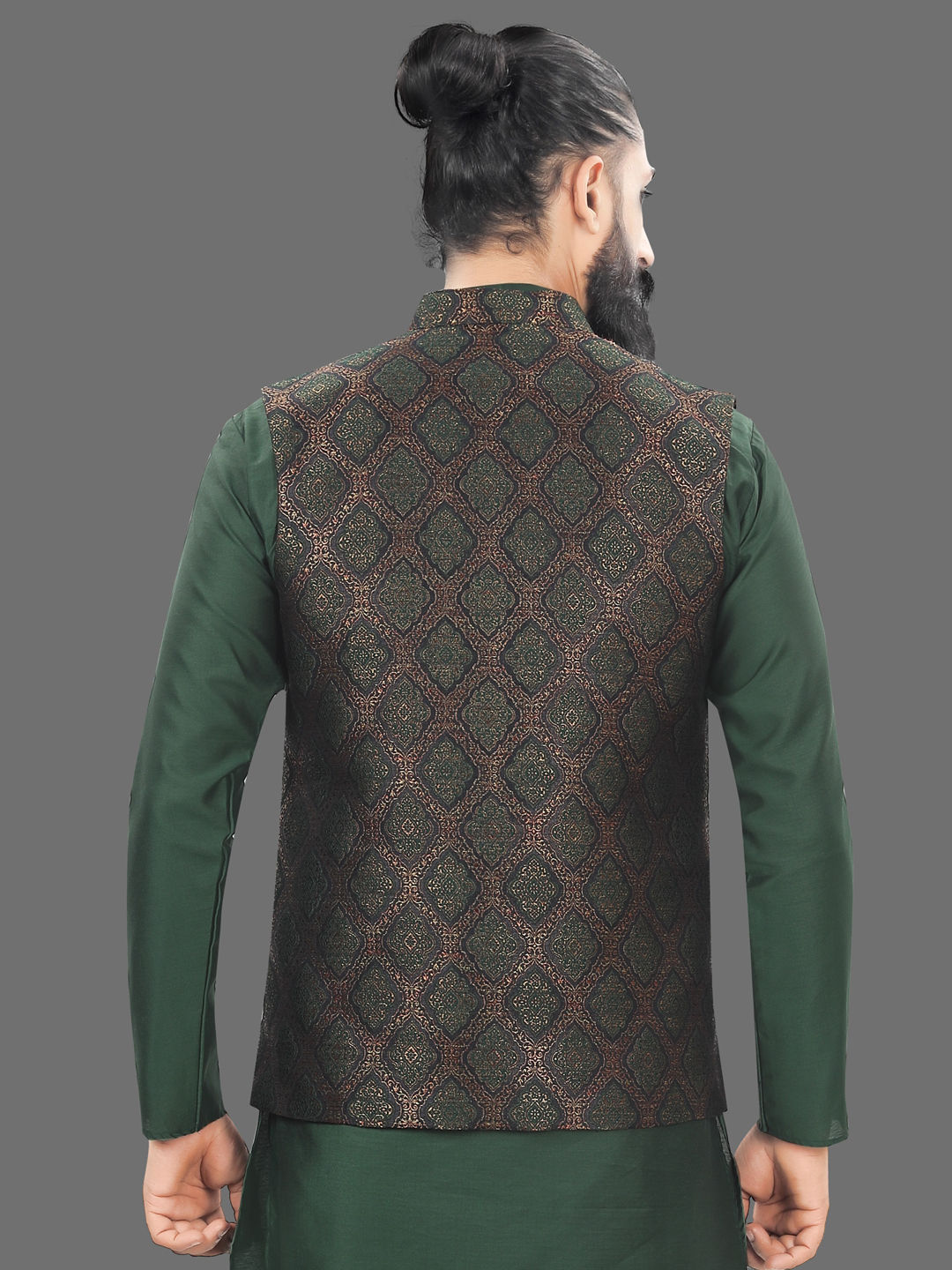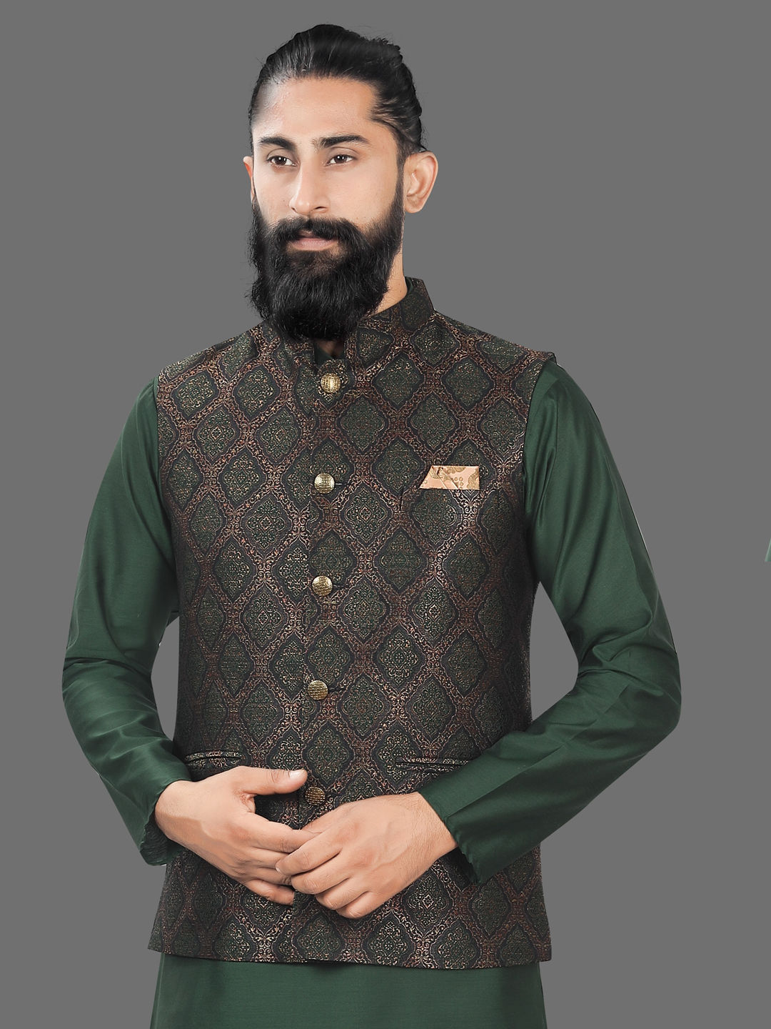 Multicolor color Nehru Jacket in Jacquard fabric with Weaving work