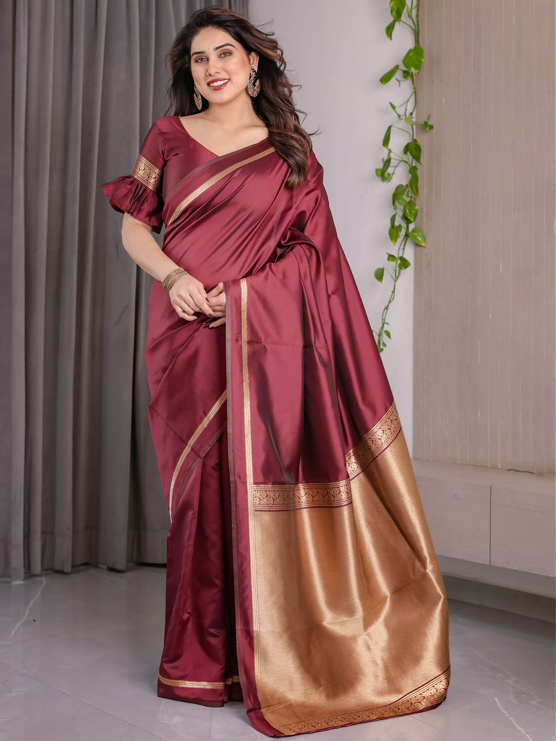 Jacquard Party Wear Saree in Red and Maroon with Weaving work