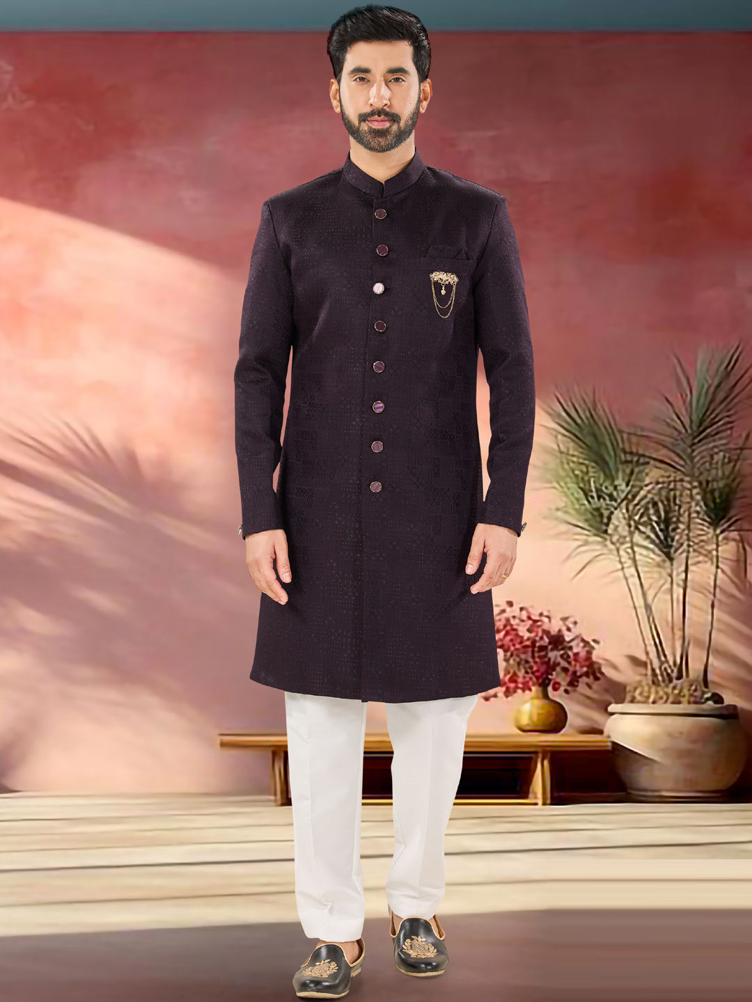 Purple and Violet color IndoWestern Dress in Jacquard fabric with Broches, Embroidered, Thread work