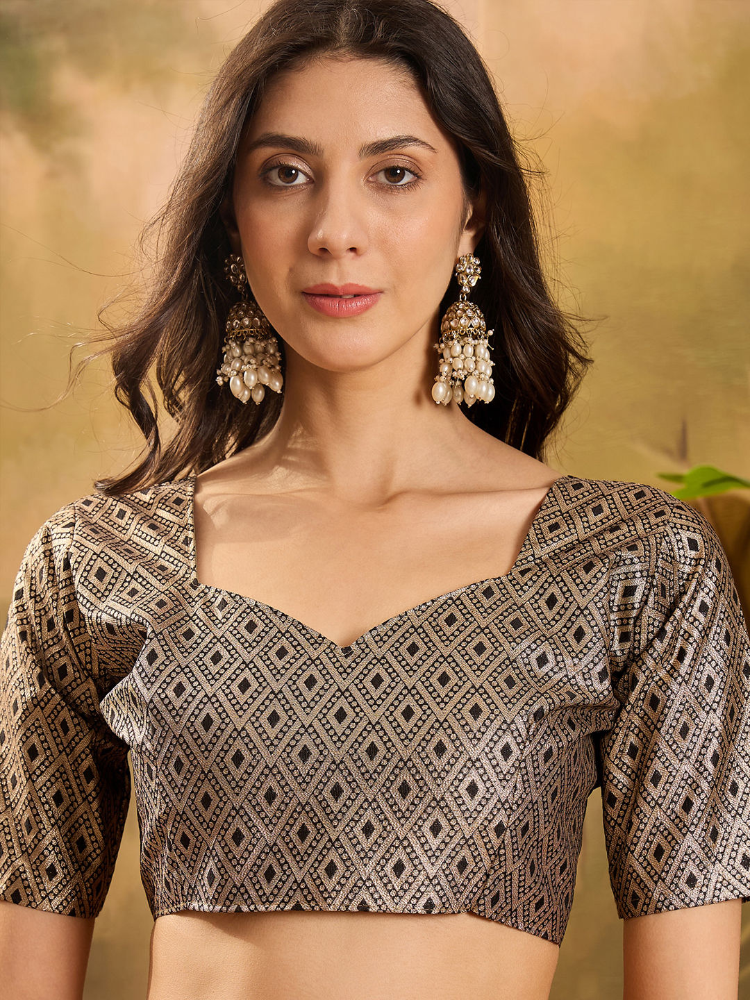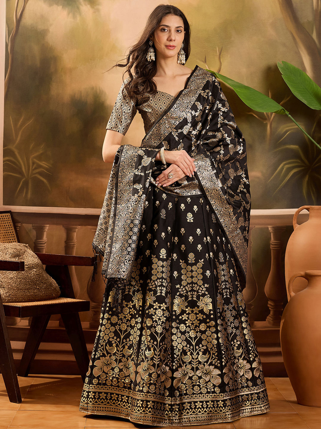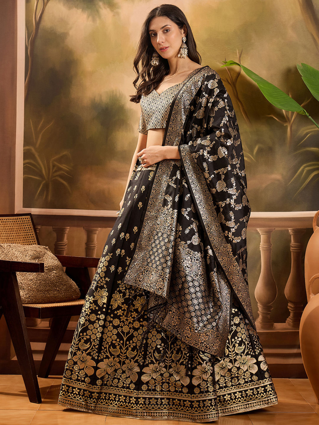 Black and Grey color Lehenga in Banarasi Silk, Jacquard fabric with Weaving work
