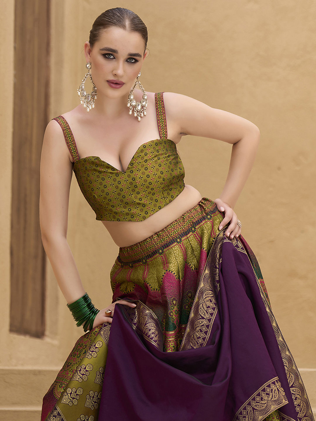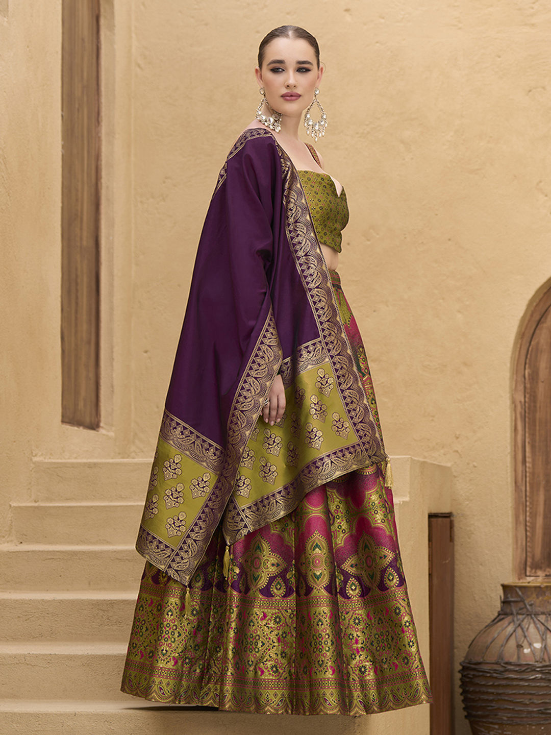 Jacquard Wedding Lehenga in Purple and Violet with Zari work