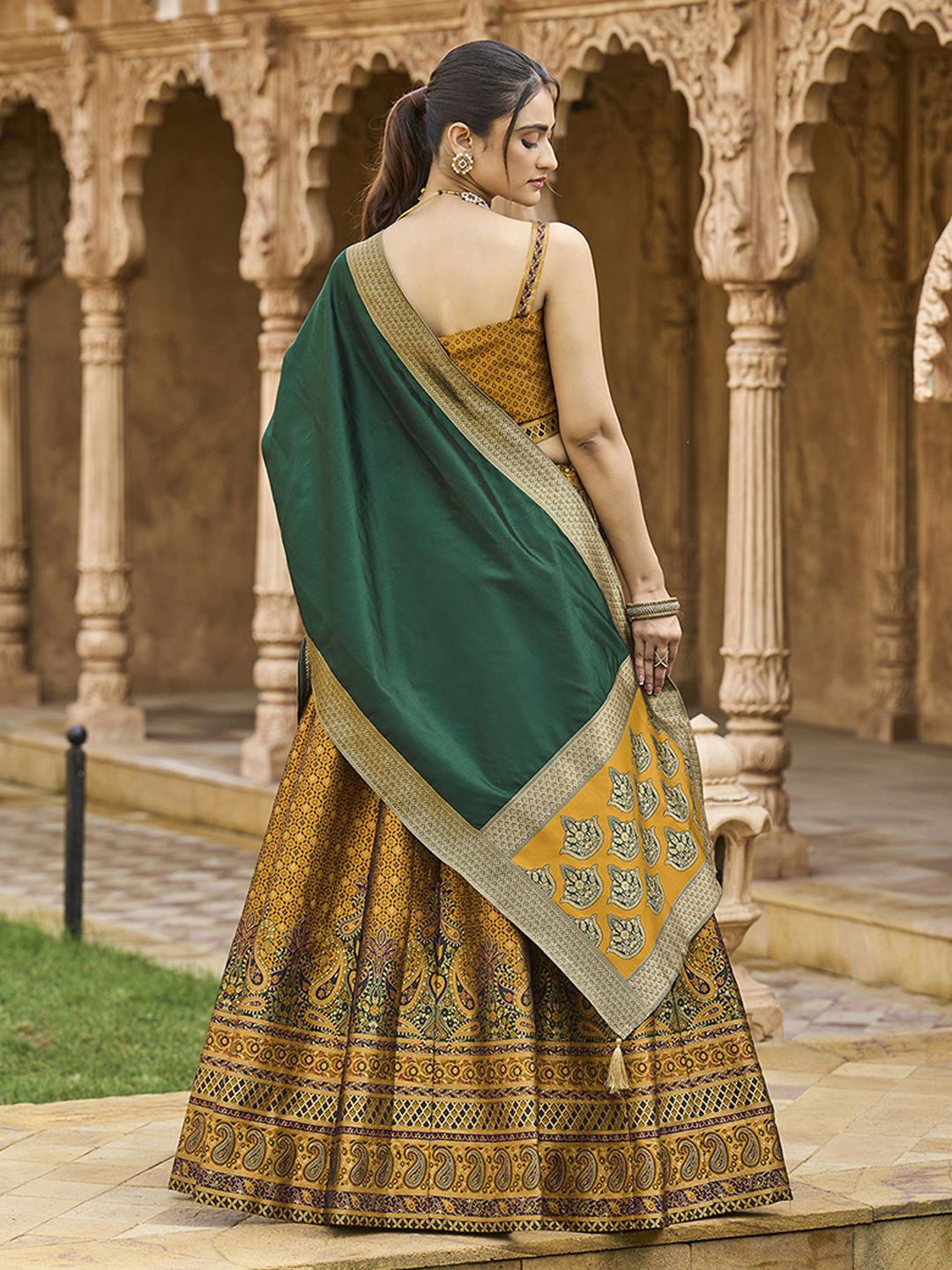 Yellow color Lehenga in Jacquard fabric with Weaving, Zari work