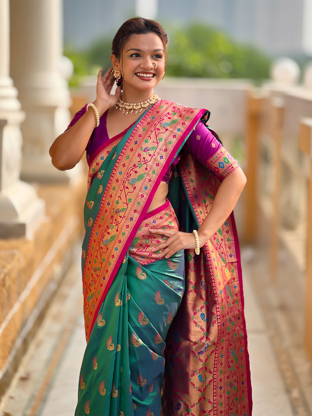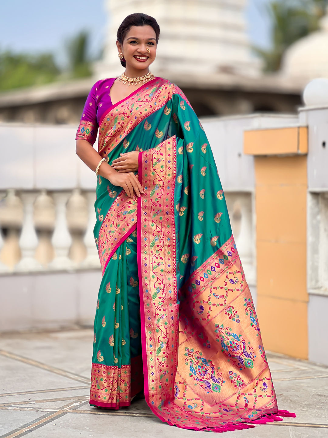 Jacquard Traditional Saree in Green with Weaving work