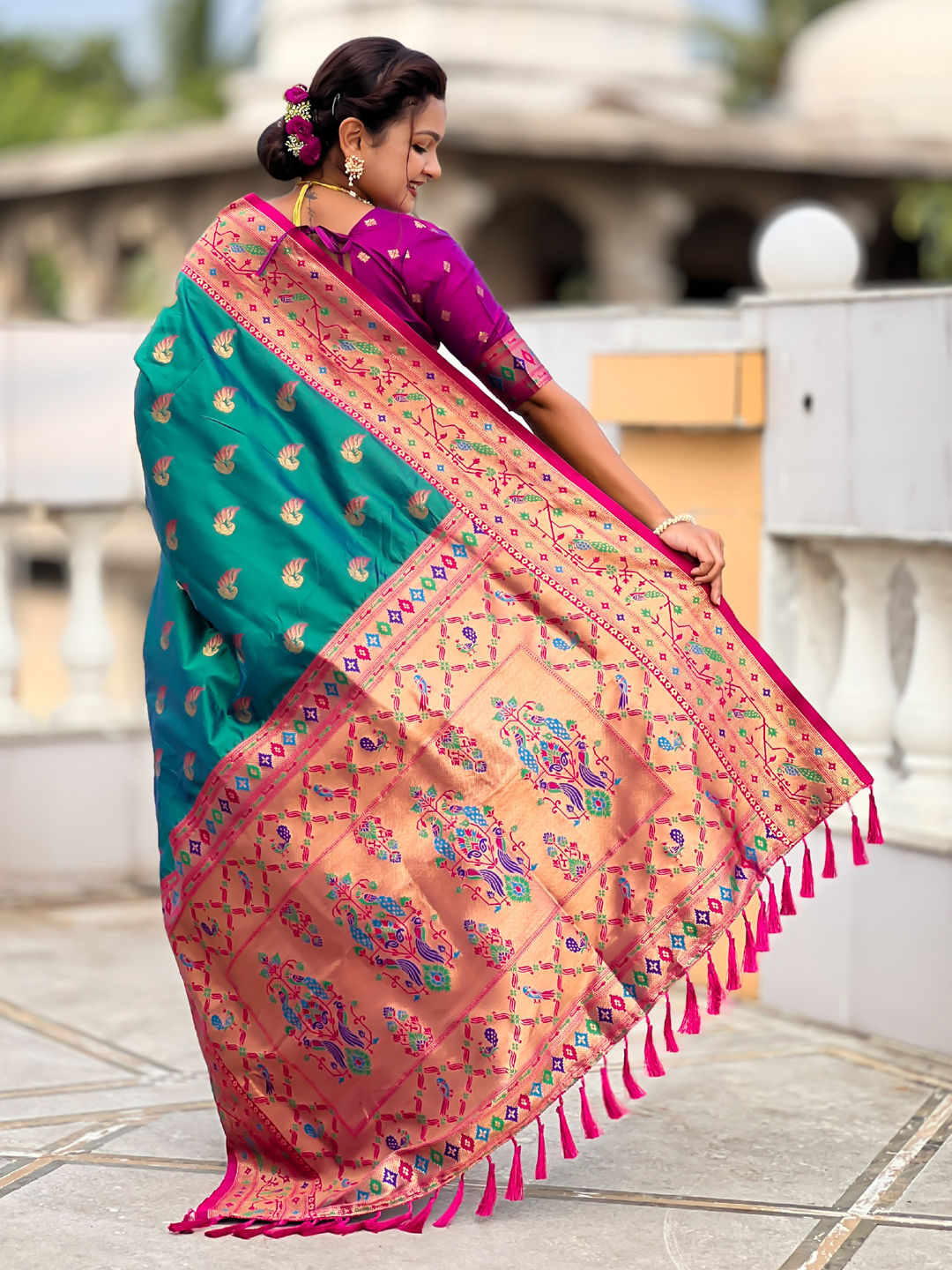 Jacquard Wedding Saree in Green with Weaving work