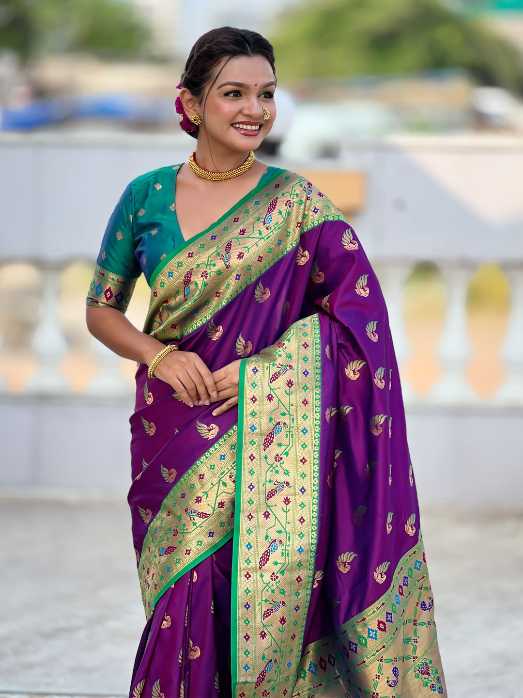 Jacquard Wedding Saree in Green with Weaving work