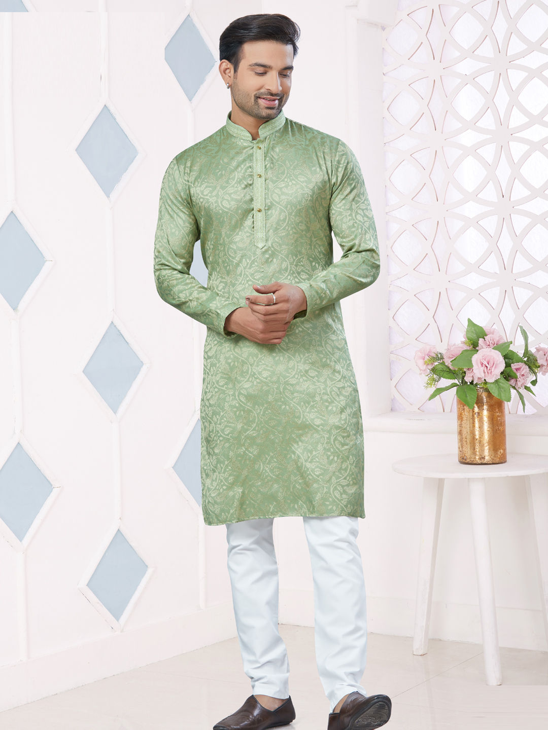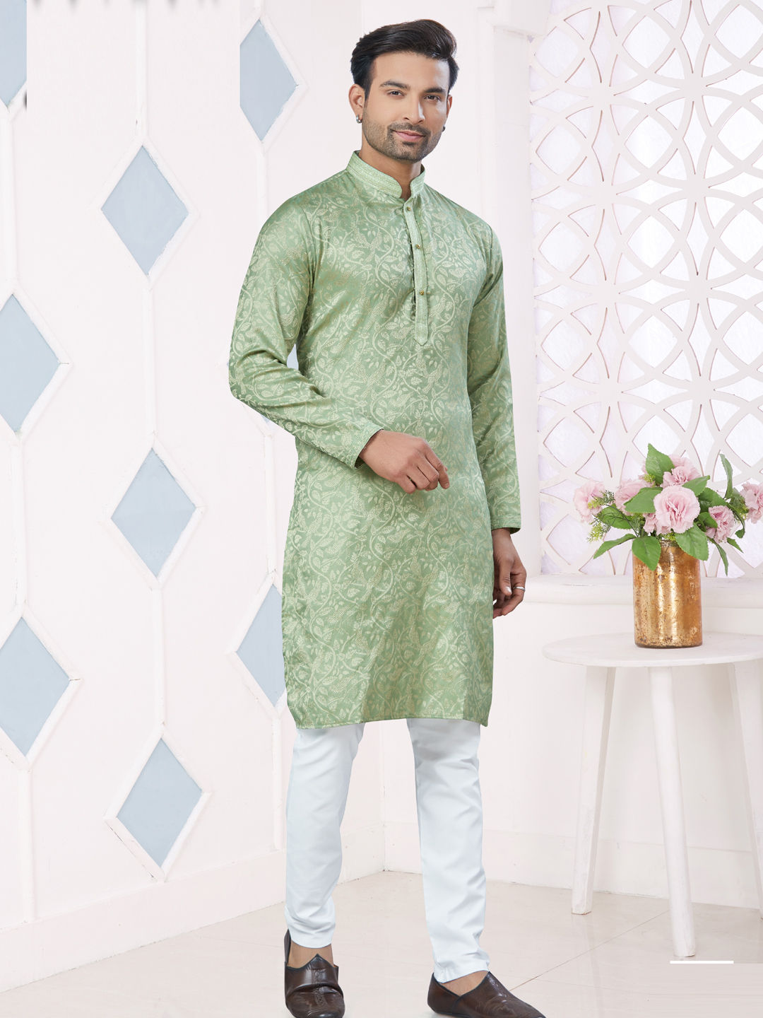 Green color Kurta Pyjamas in Jacquard fabric with Thread, Weaving work