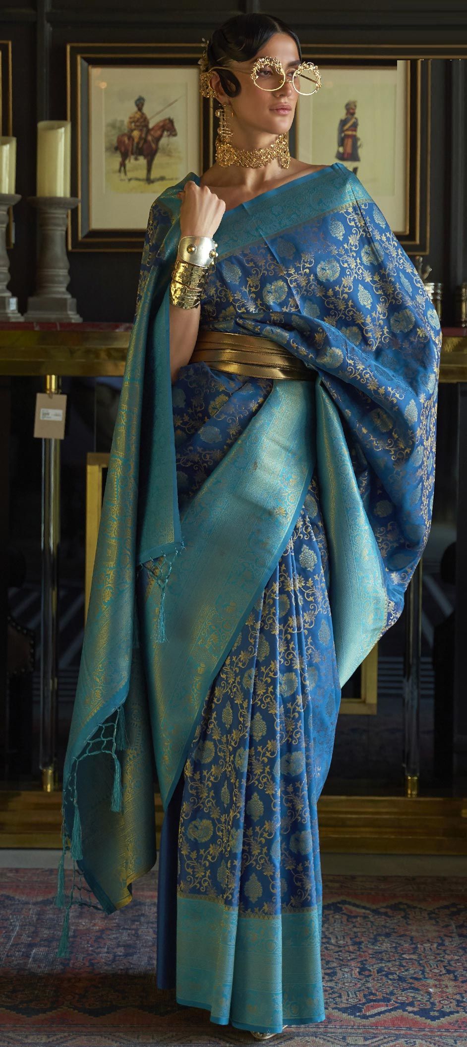 Jacquard Traditional Saree in Blue with Weaving work