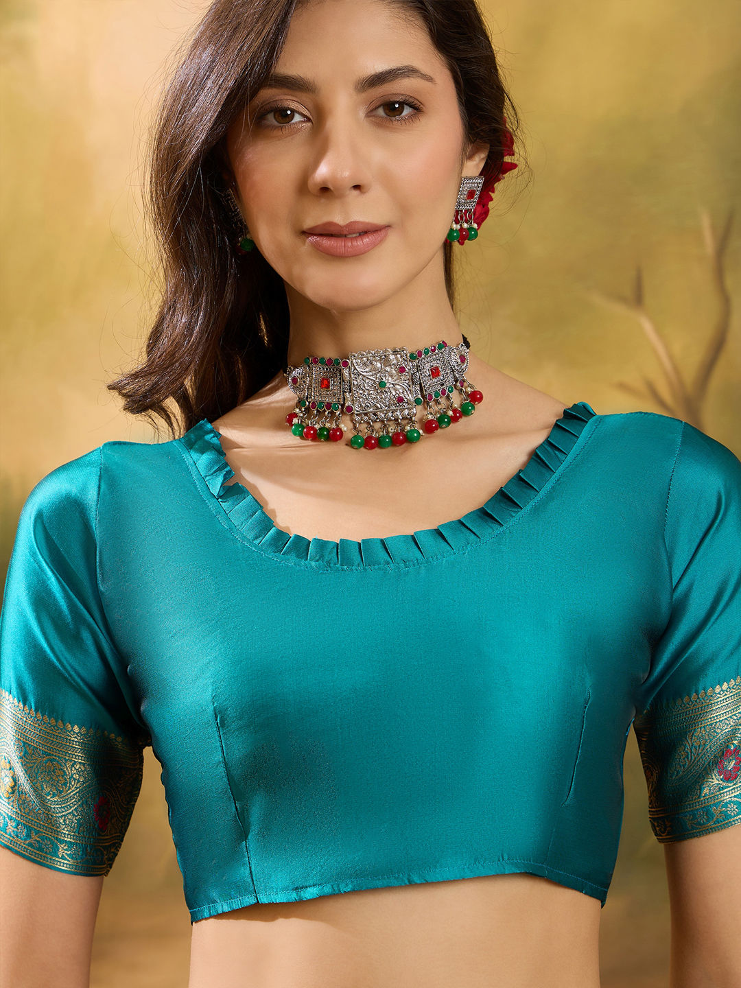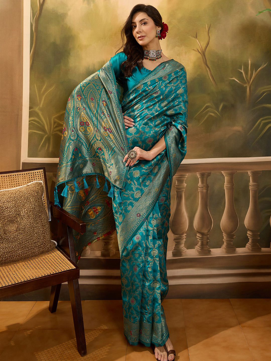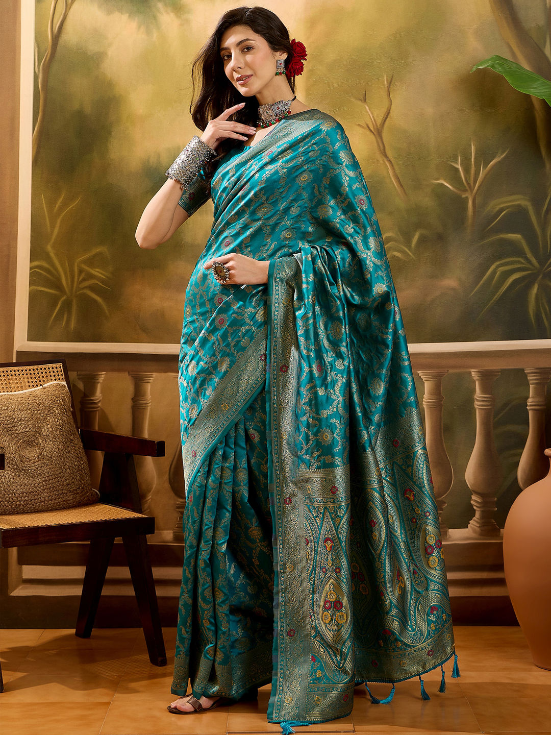 Blue color Saree in Banarasi Silk, Jacquard fabric with Weaving work