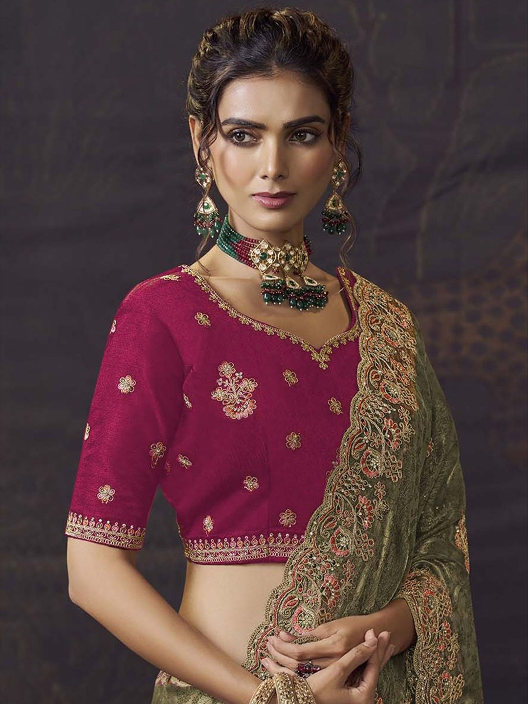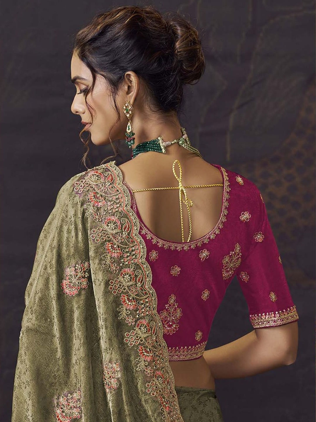 Jacquard Bridal Saree in Green with Sequence work