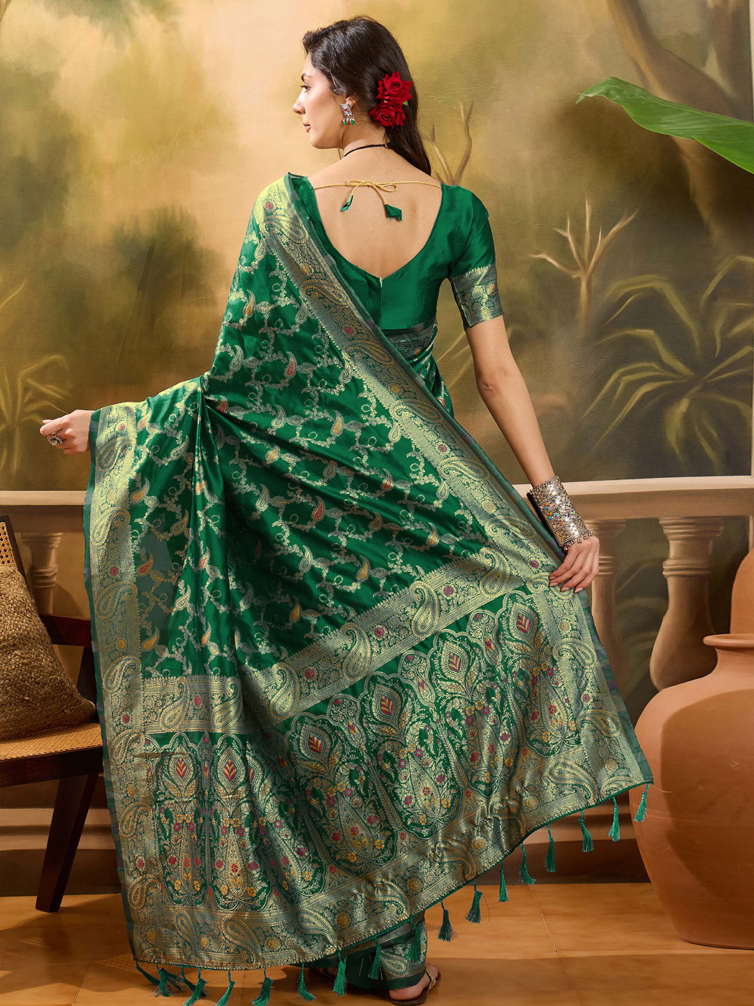 in Green with Weaving work