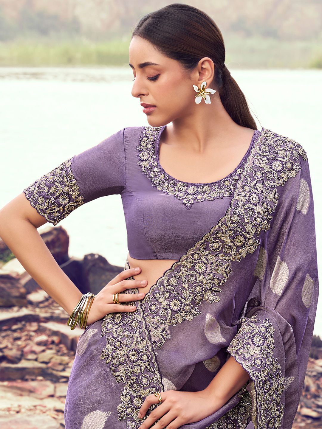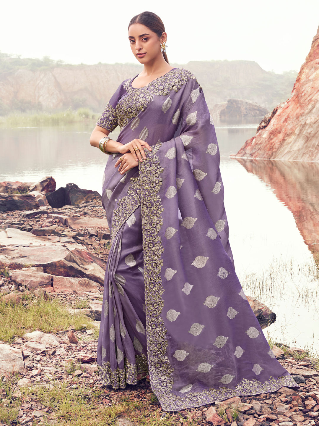 Purple and Violet color Saree in Jacquard, Tissue fabric with Embroidered, Resham, Sequence, Weaving, Zari work