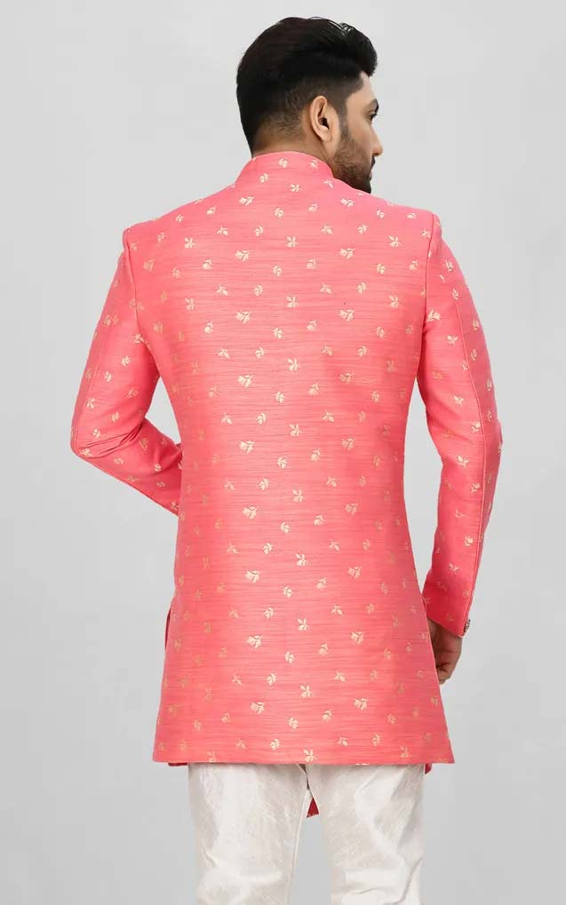 Jacquard Wedding Kurta in Red and Maroon with Weaving work
