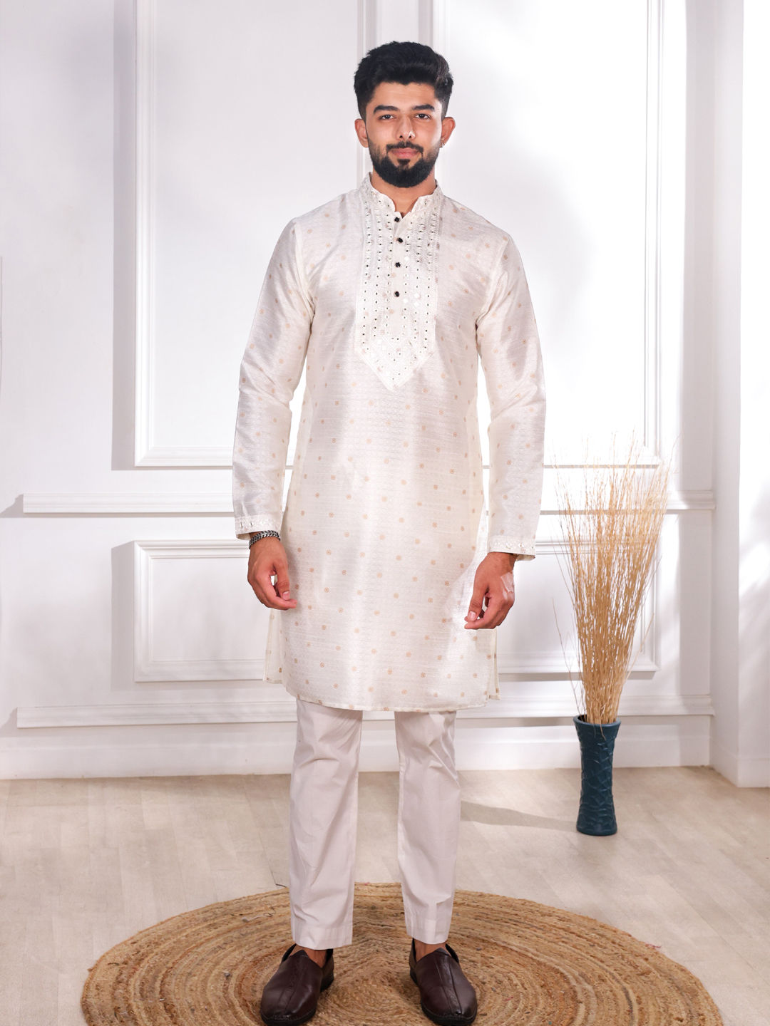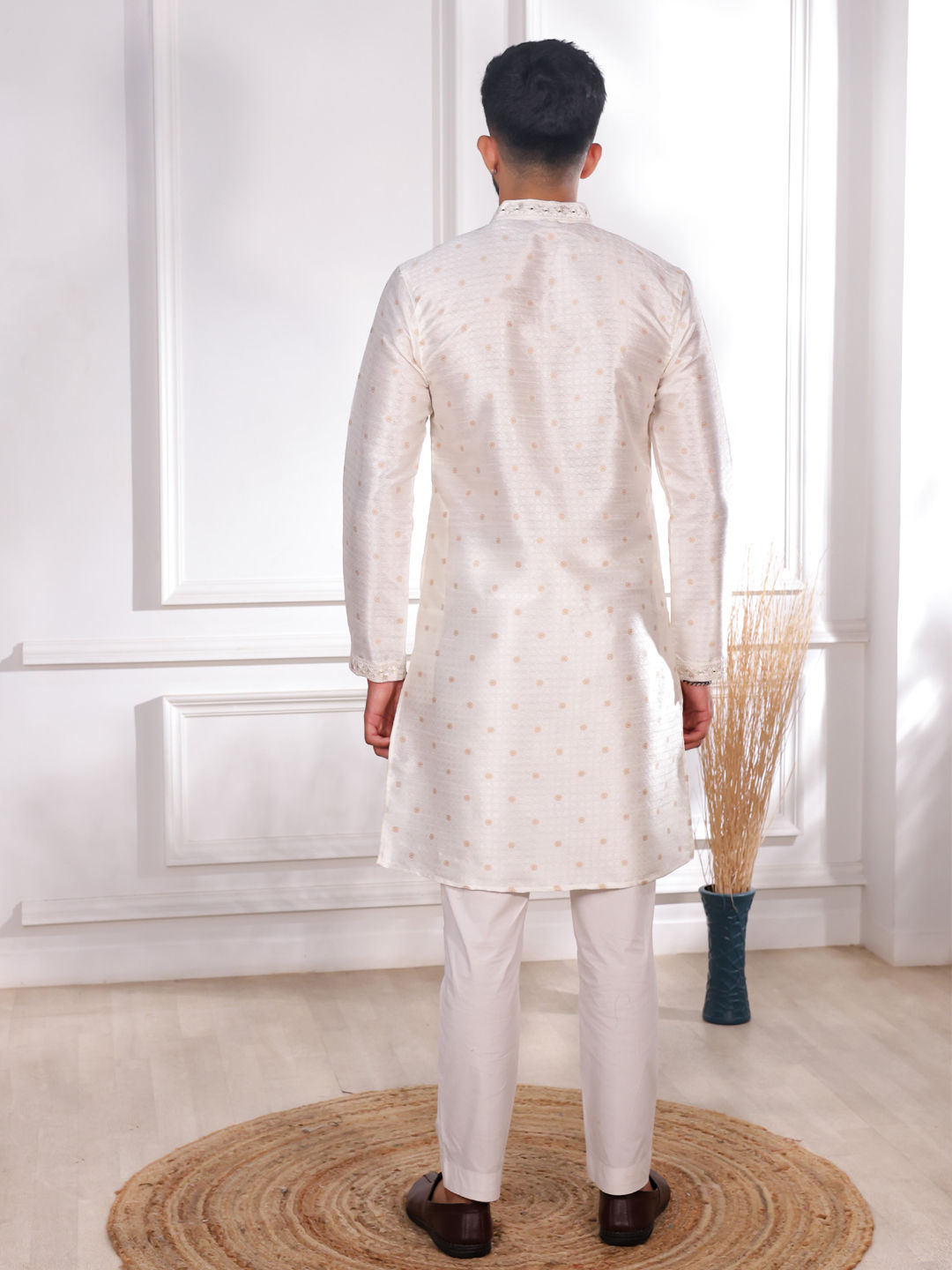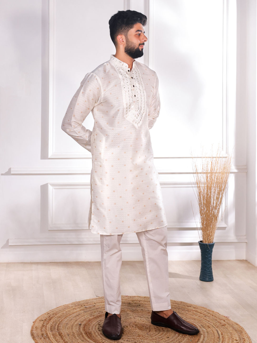 White and Off White color Kurta Pyjamas in Jacquard fabric with Embroidered, Thread work