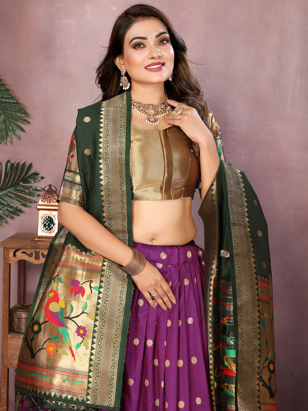 Purple and Violet color Lehenga in Jacquard fabric with Weaving, Zari work