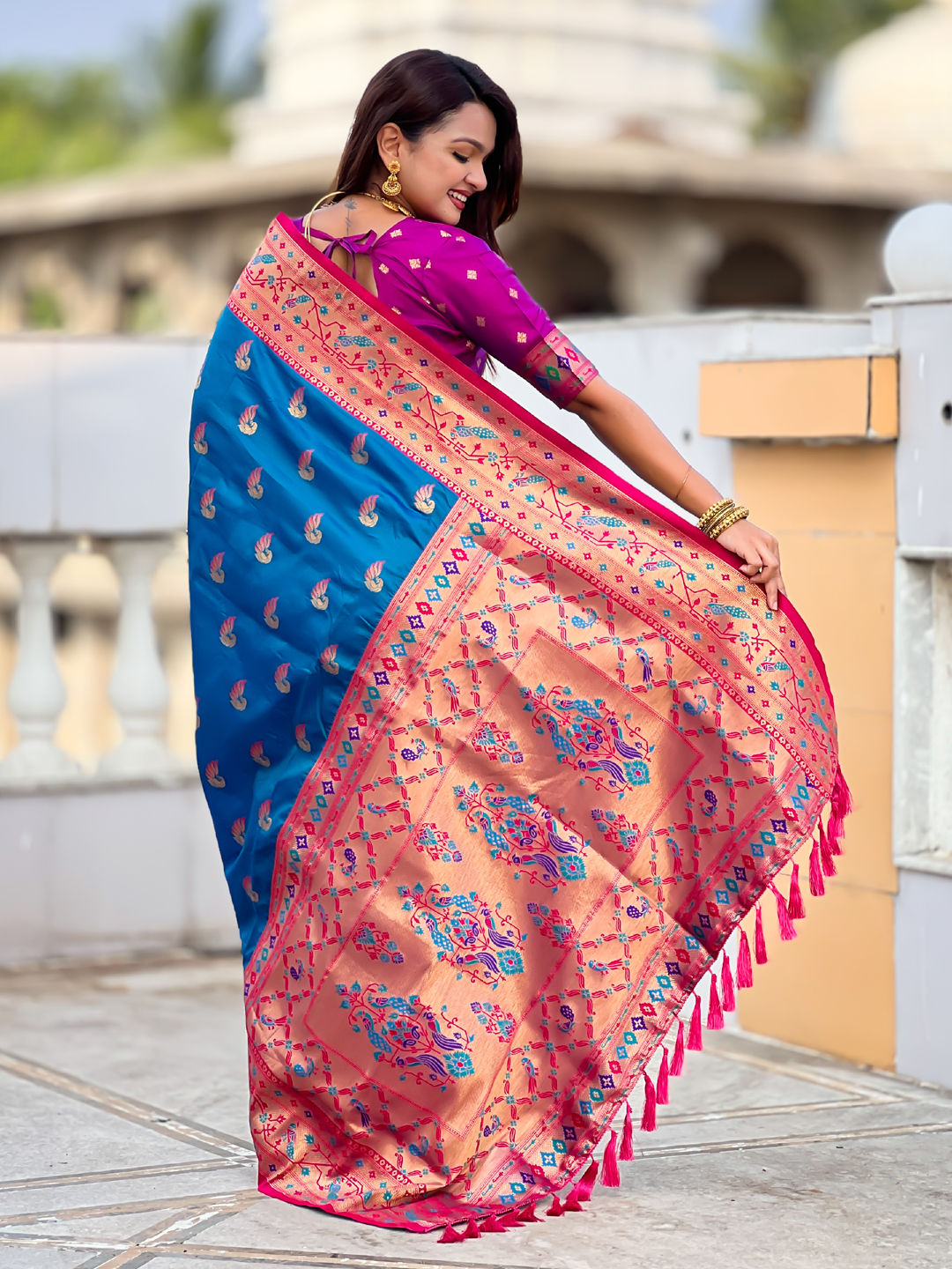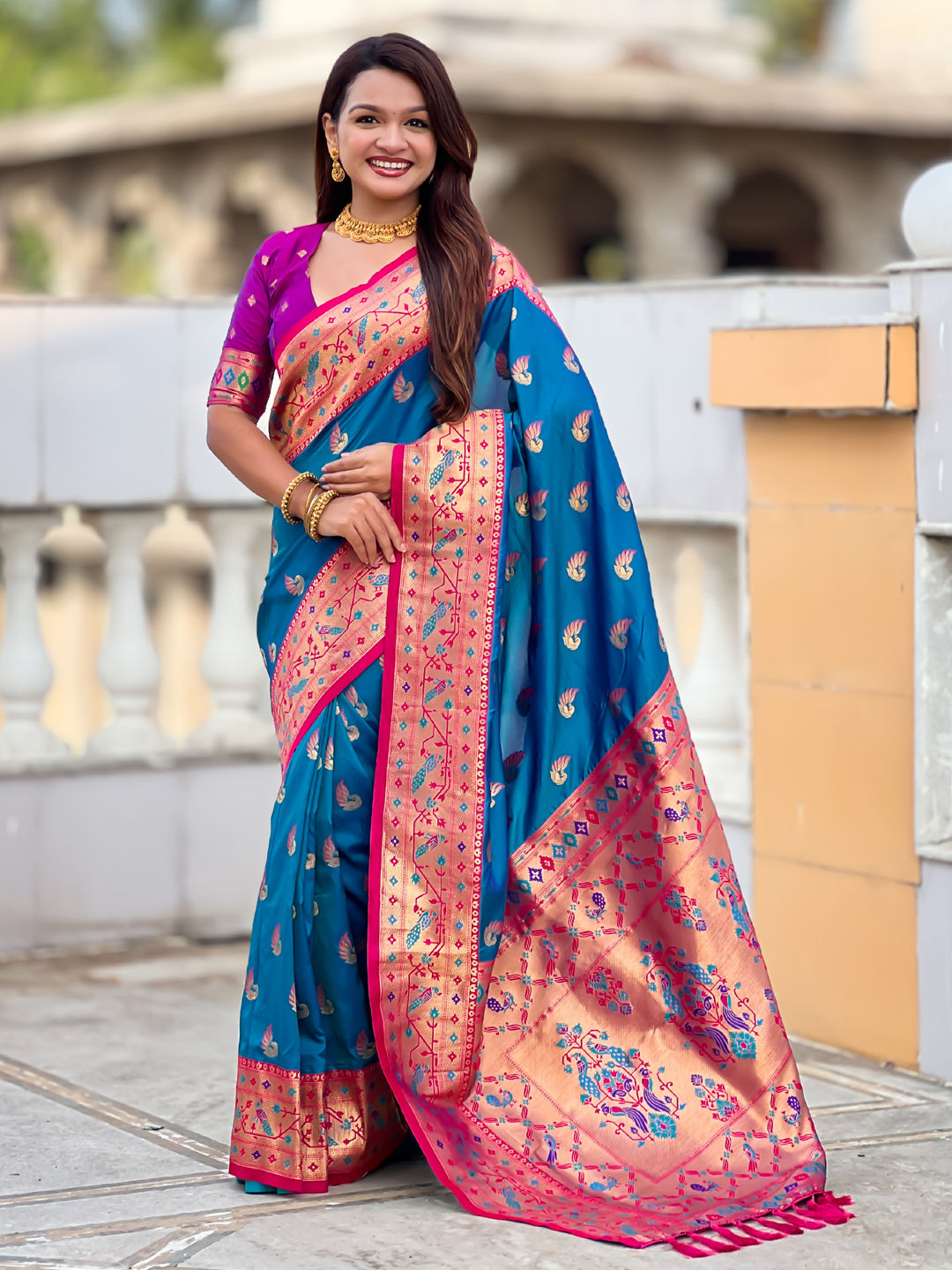 Jacquard Reception Saree in Pink and Majenta with Weaving work