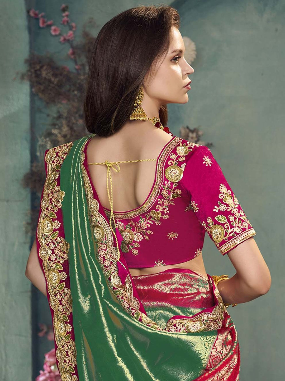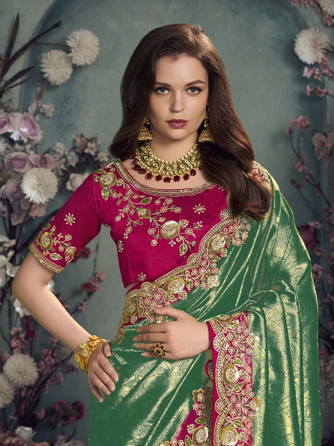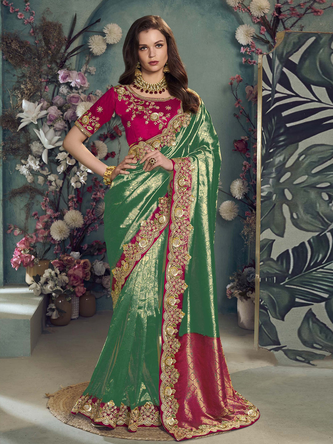 Jacquard Bridal Saree in Green with Sequence work