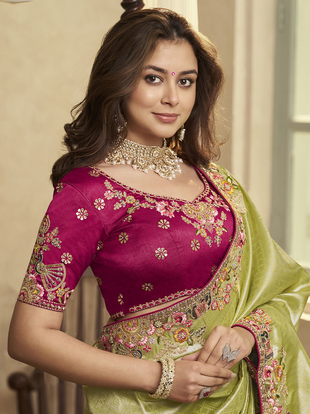 Green color Saree in Jacquard fabric with Embroidered, Sequence, Stone, Thread, Weaving, Zari work