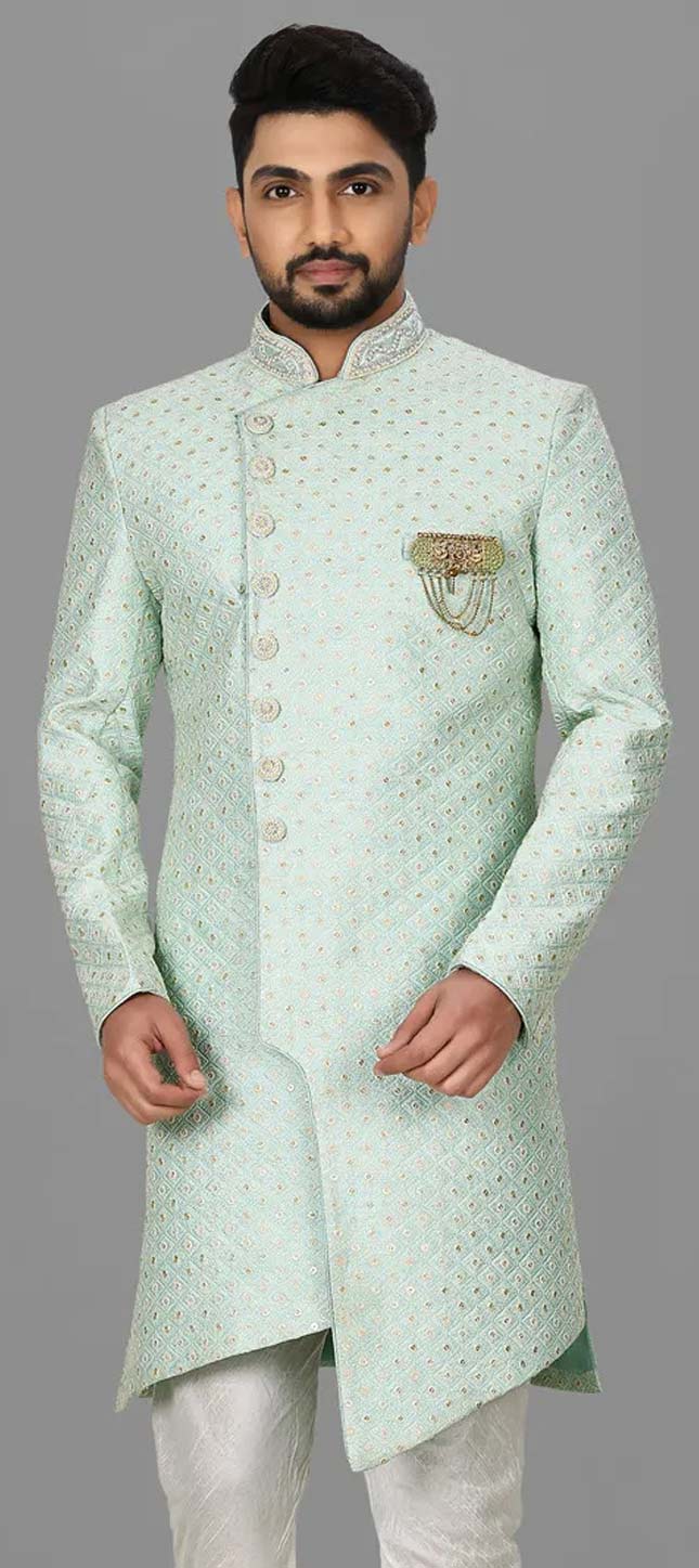 Jacquard Wedding Kurta in Blue with Weaving work