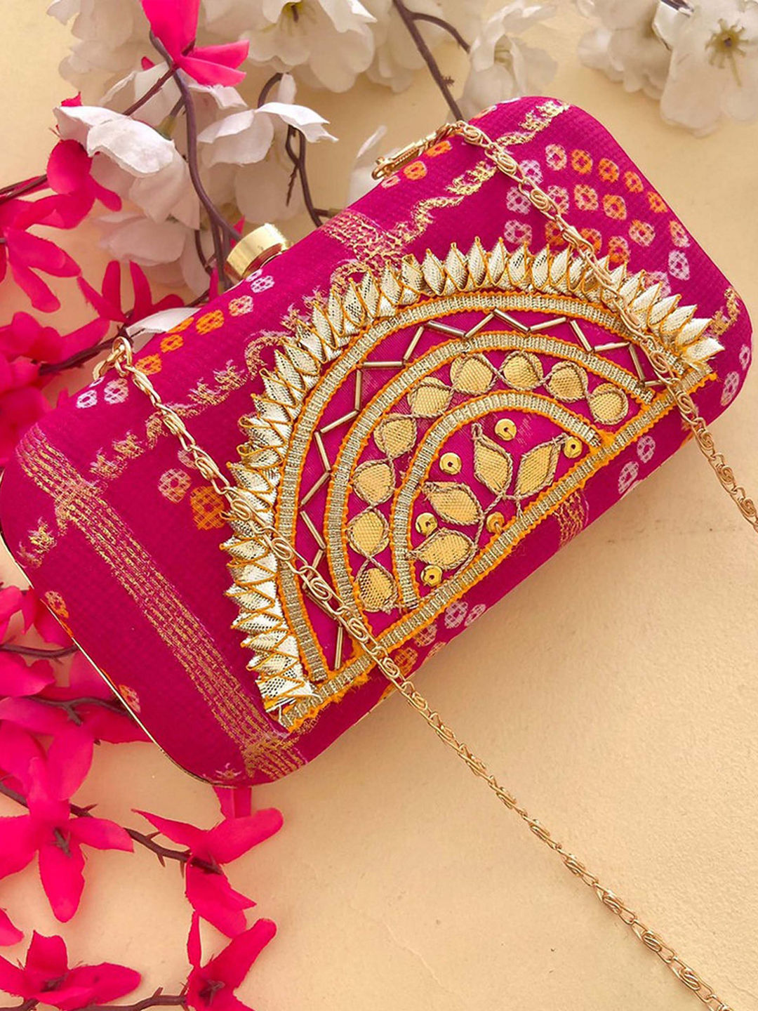 Pink and Majenta color Clutches in Jute fabric with Gota Patti work