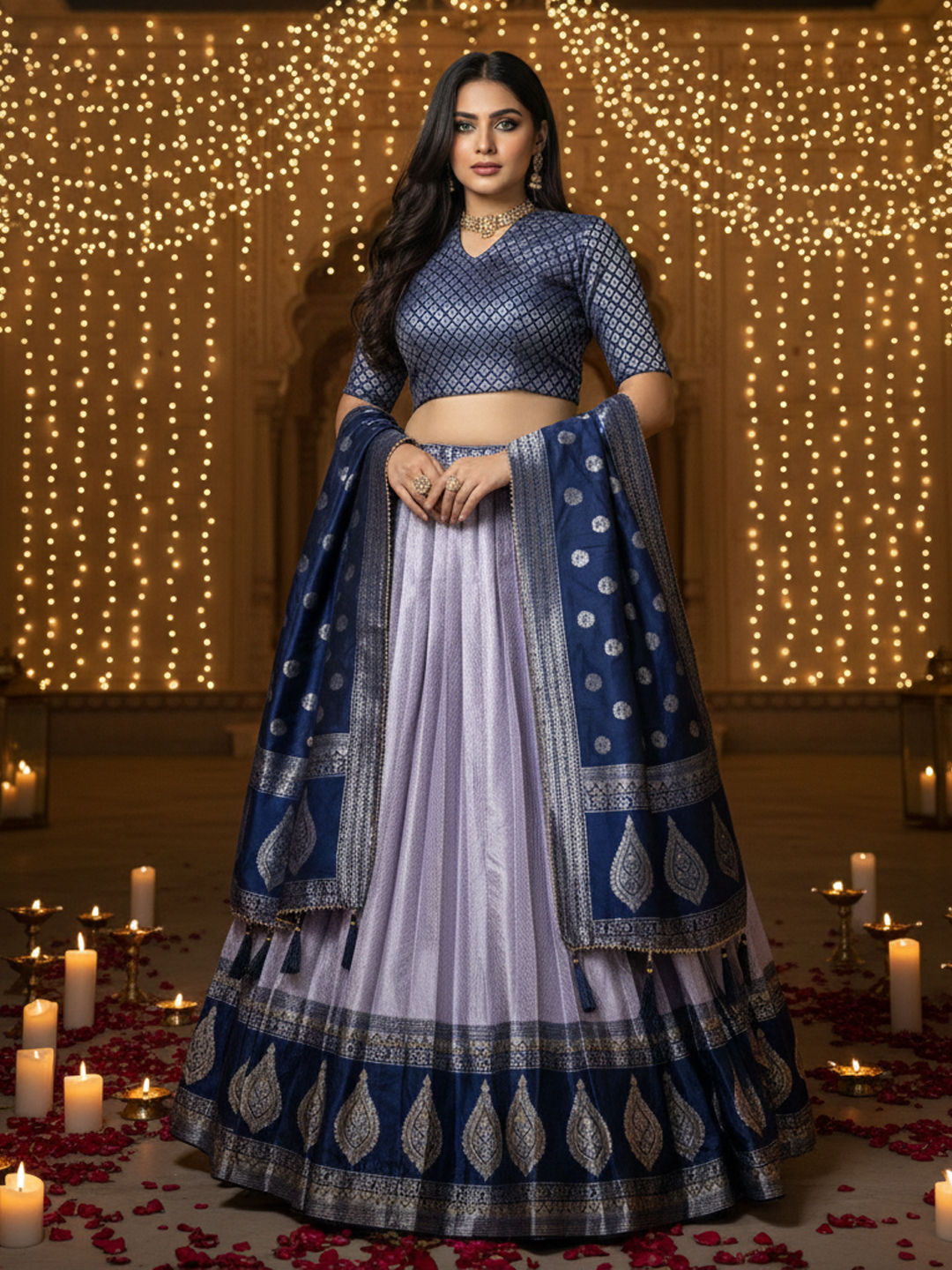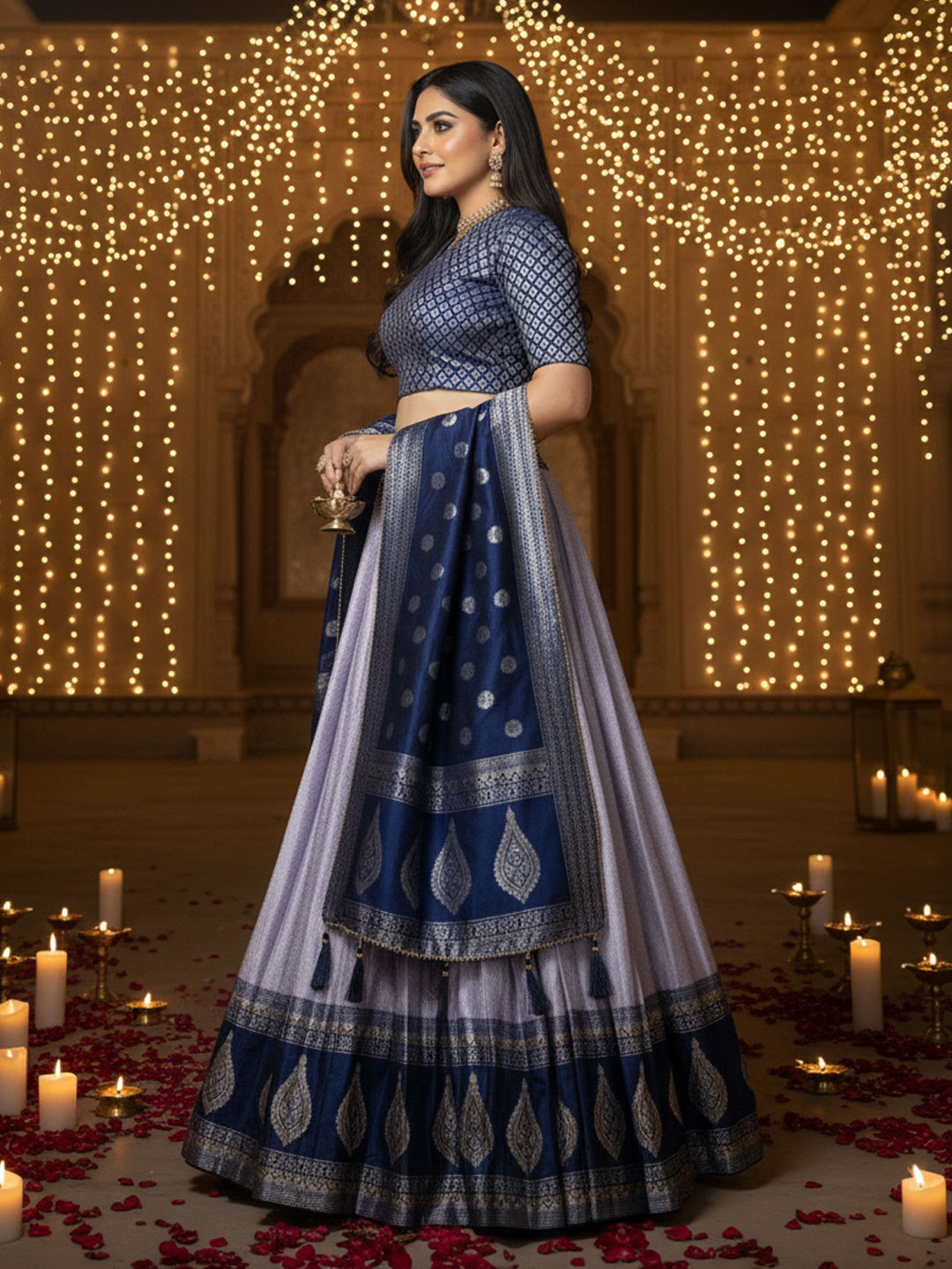 Kanchipuram Silk Festive Lehenga in Blue with Weaving work